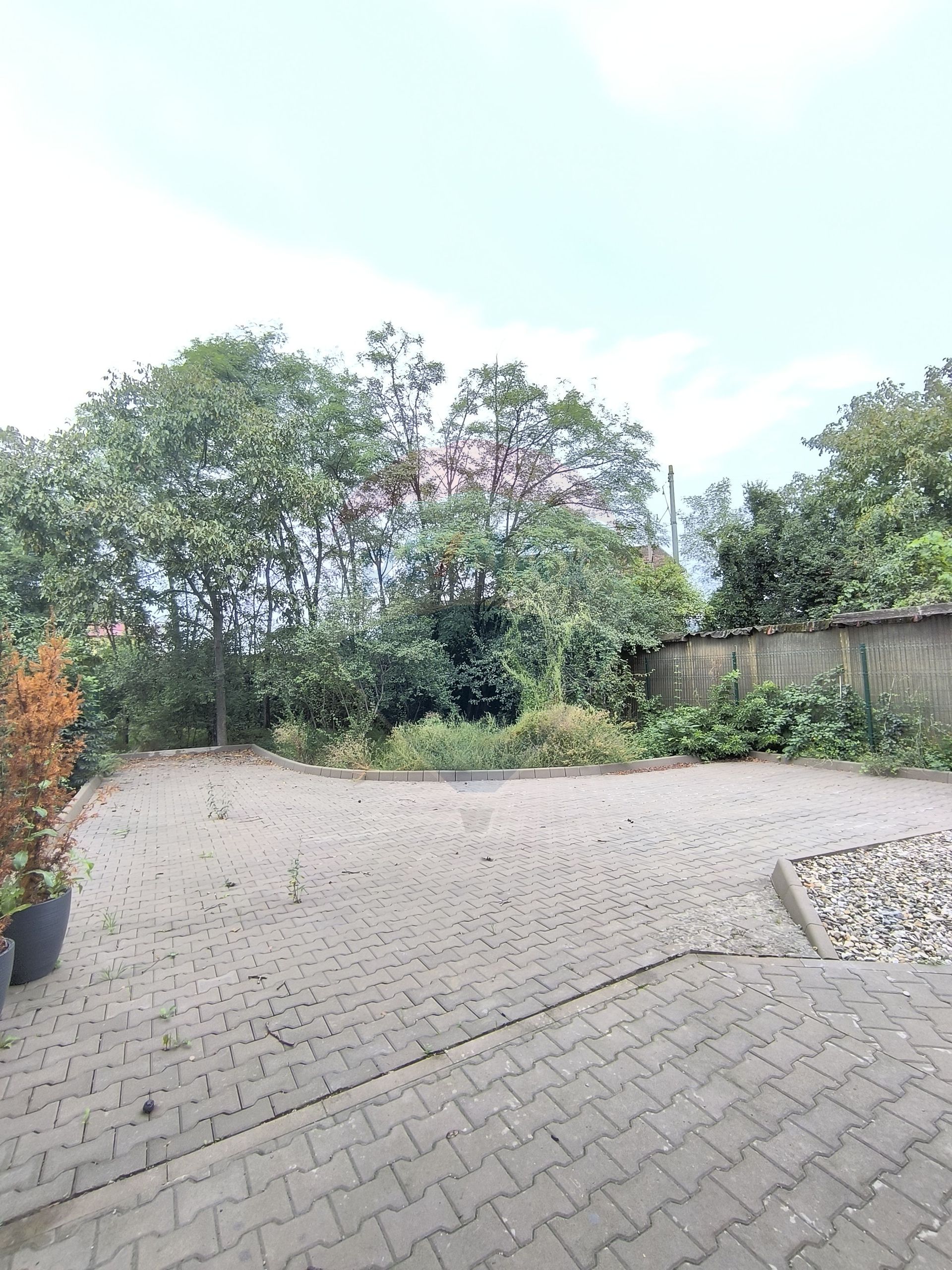 Curte generoasă cu spațiu verde, cu 2 locuri de parcare, poartă automată și senzori de mișcare;