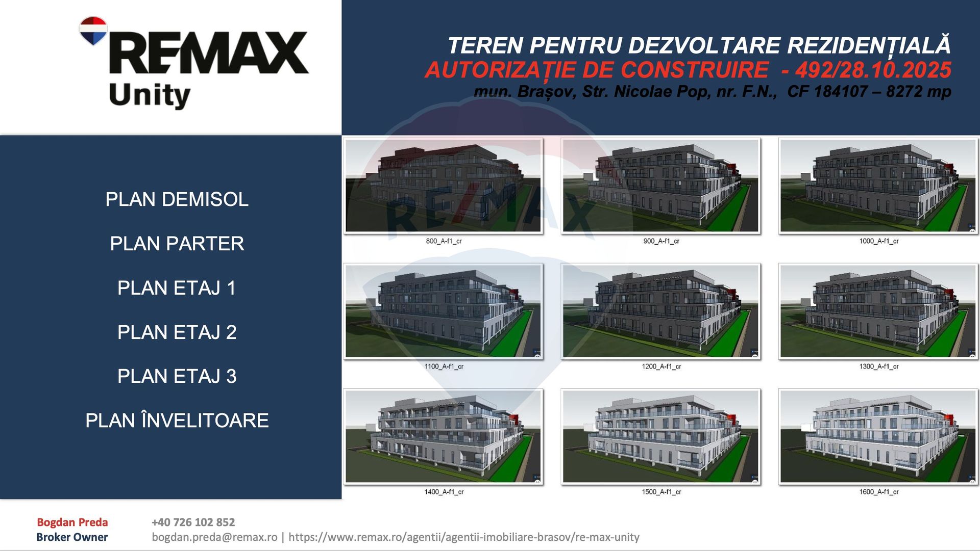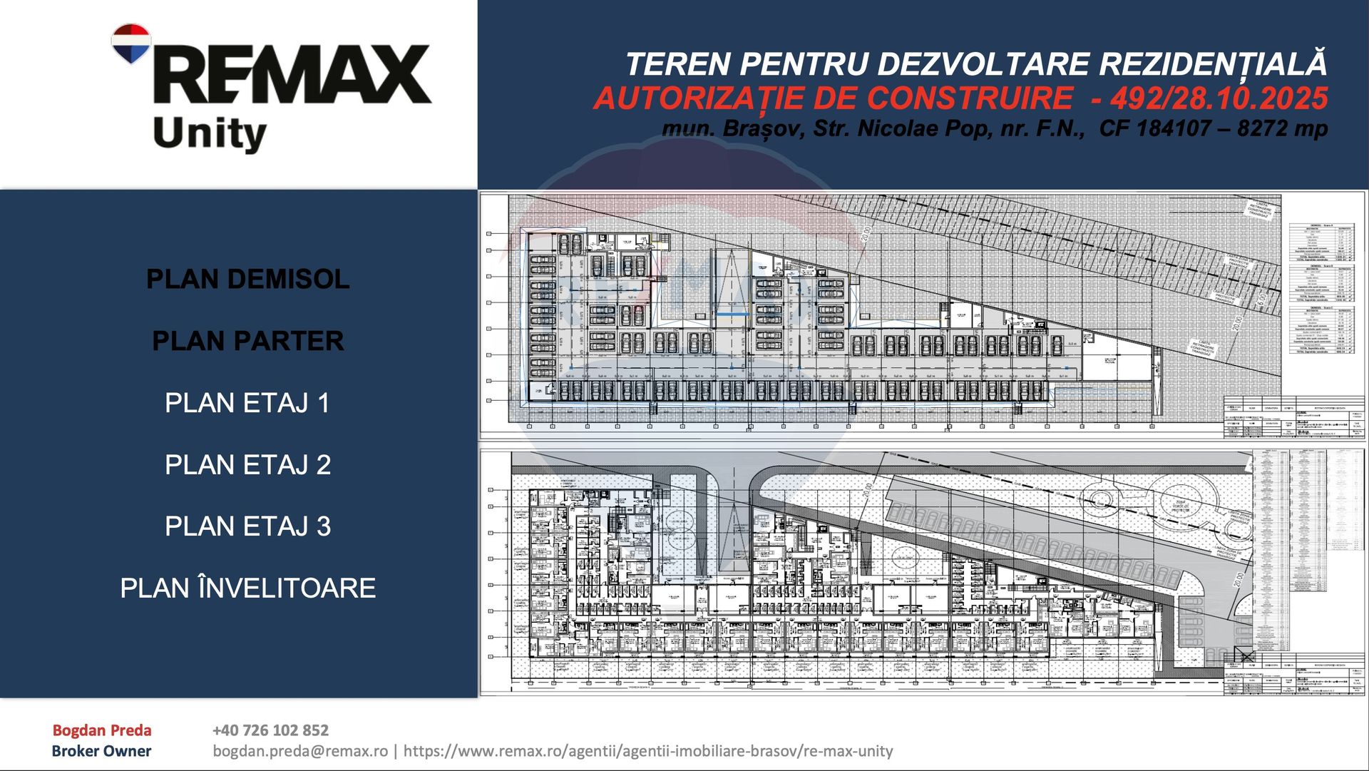 Teren pentru dezvoltare rezidențială cu Autorizație de Construire – Brașov | 8.272 mp | Proiect aprobat pentru 13.000+ mp construiți - 100 apartamente