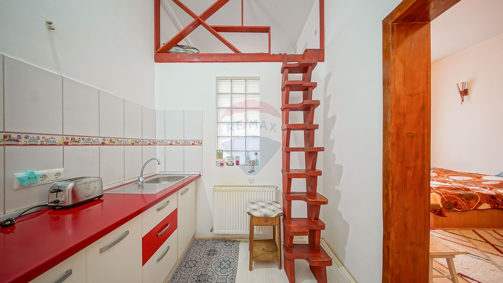 Datorită înălțimii generoase a încăperilor, a fost amenajat un spațiu tip mezanin, utilizat ca zonă de dormit, ceea ce oferă o organizare mai eficientă a spațiului și un plus de confort.