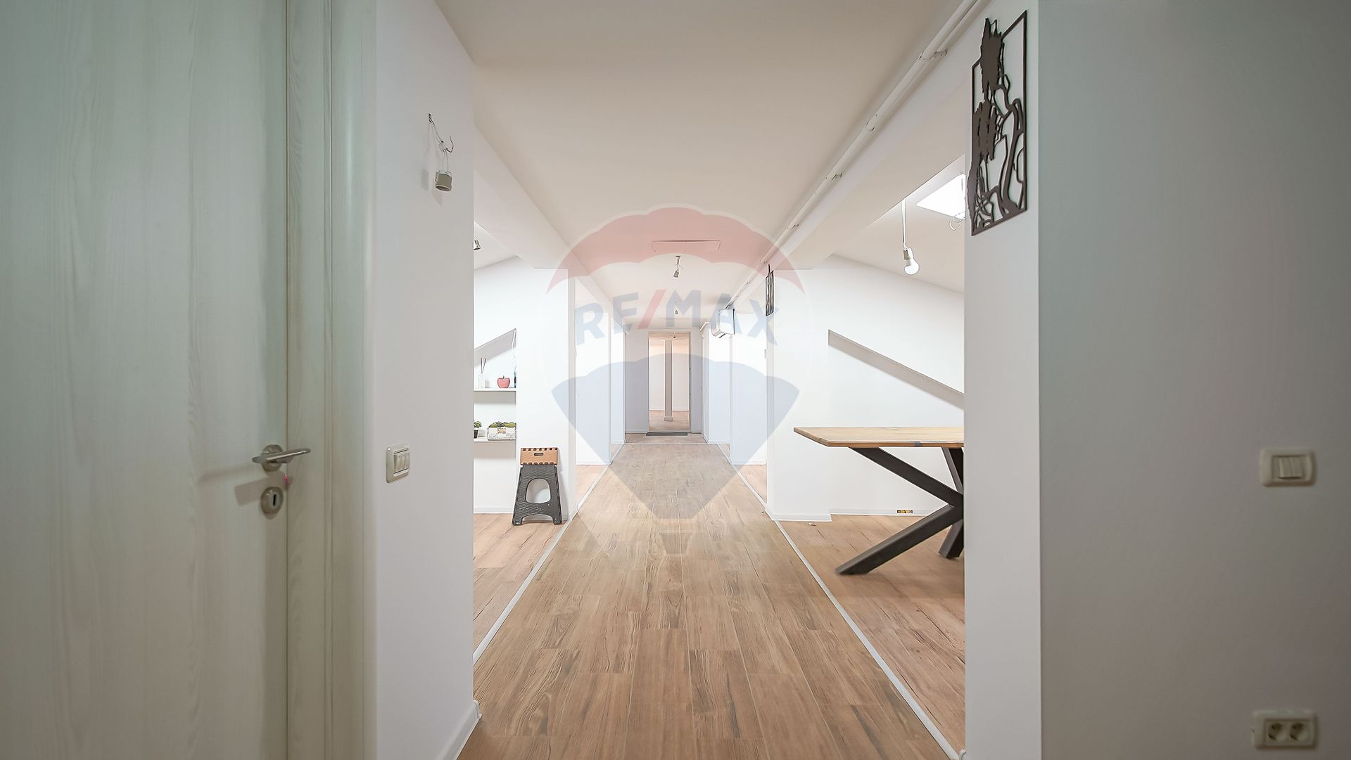 Spațiul este compartimentat eficient pentru a oferi intimitate între birouri și zone de lucru, fiind potrivit pentru echipe sau activități care necesită mai multe încăperi separate.