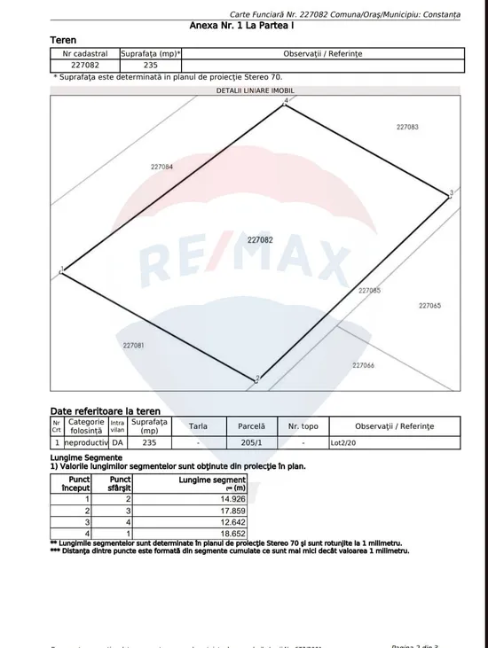 Vă propunem spre vânzare un teren intravilan in suprafata de 235 mp, cu front stradal de 18.65 m, situat in Constanta, in imediata vecinatate a reprezentantei auto Automobile Bavaria Motors.