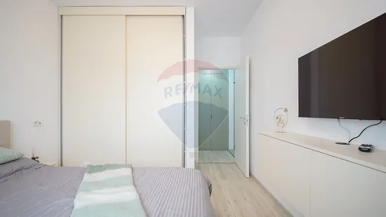 Oferim spre vânzare un apartament open-space cu o suprafață utilă de 53 mp, situat la etajul 10 al unui imobil modern, ce oferă o priveliște spectaculoasă către munți. Apartamentul este complet mobilat și utilat, toate dotările fiind noi, nefolosite, oferind astfel confortul unui spațiu proaspăt amenajat.
