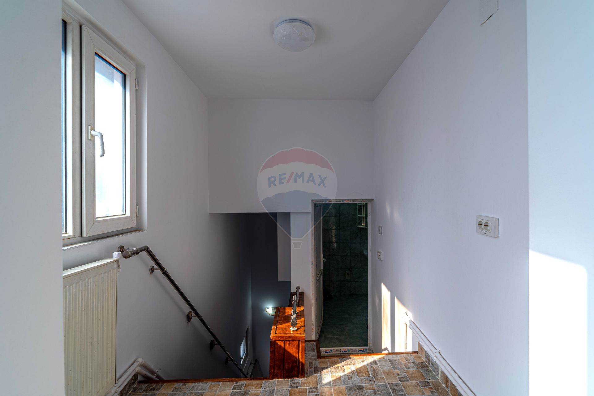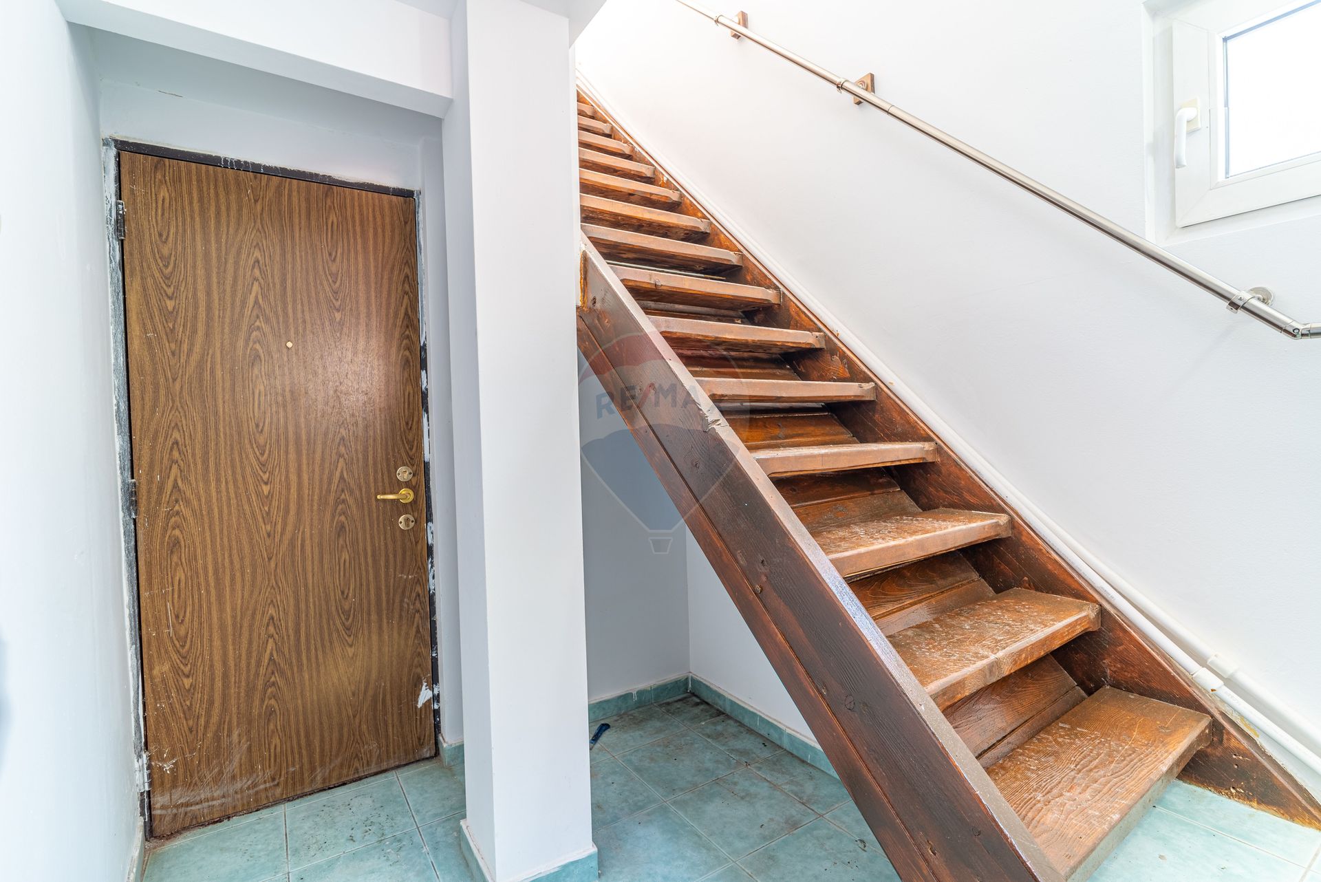 Parter: Hol de acces, o baie de serviciu și casa scării care duce la etaj.