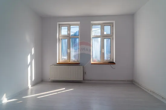 Etaj: Două camere luminoase, o baie și o bucătărie.