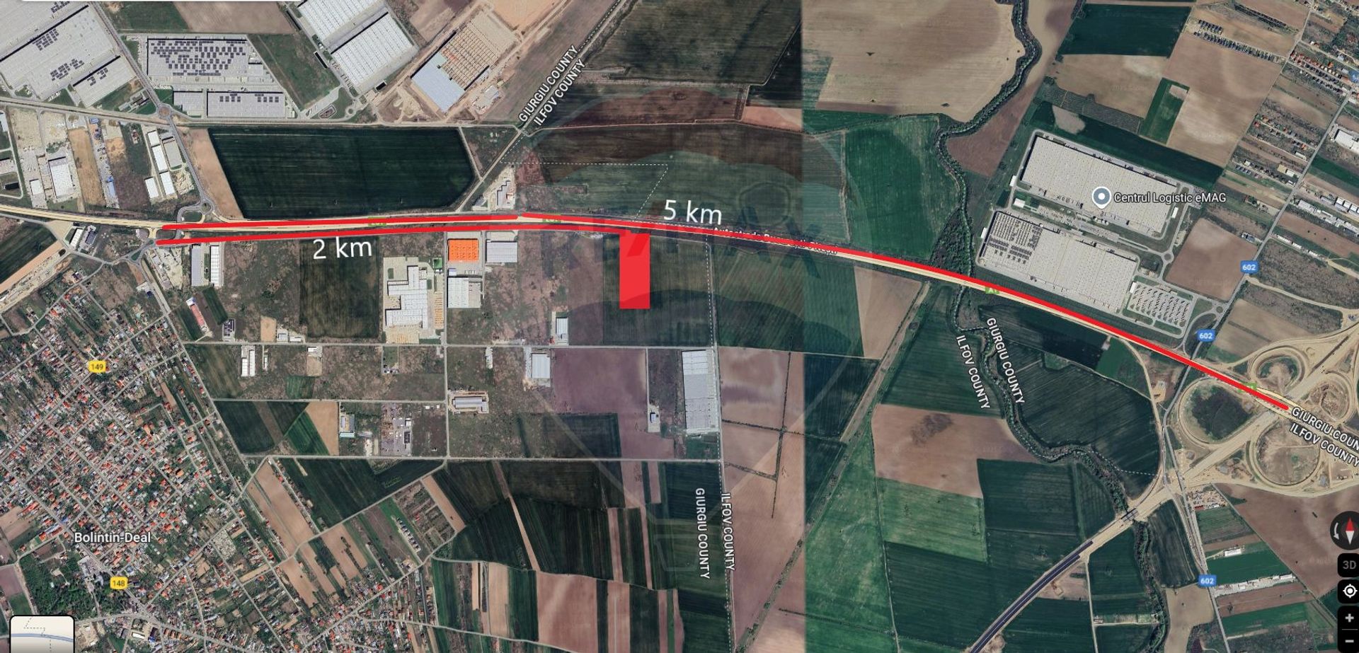 Vă propunem spre vânzare un teren intravilan situat într-o zonă industrială, cu potențial excelent pentru dezvoltarea unui proiect comercial, logistic sau de depozitare. Accesul se face facil din autostrada A1, prin nodul rutier de la km 23, iar distanța până la intrarea pe A1 este de aproximativ 2 km. De asemenea, conexiunea cu autostrada de centură A0 se află la doar 7 km, oferind legături rapide către principalele rute de transport.