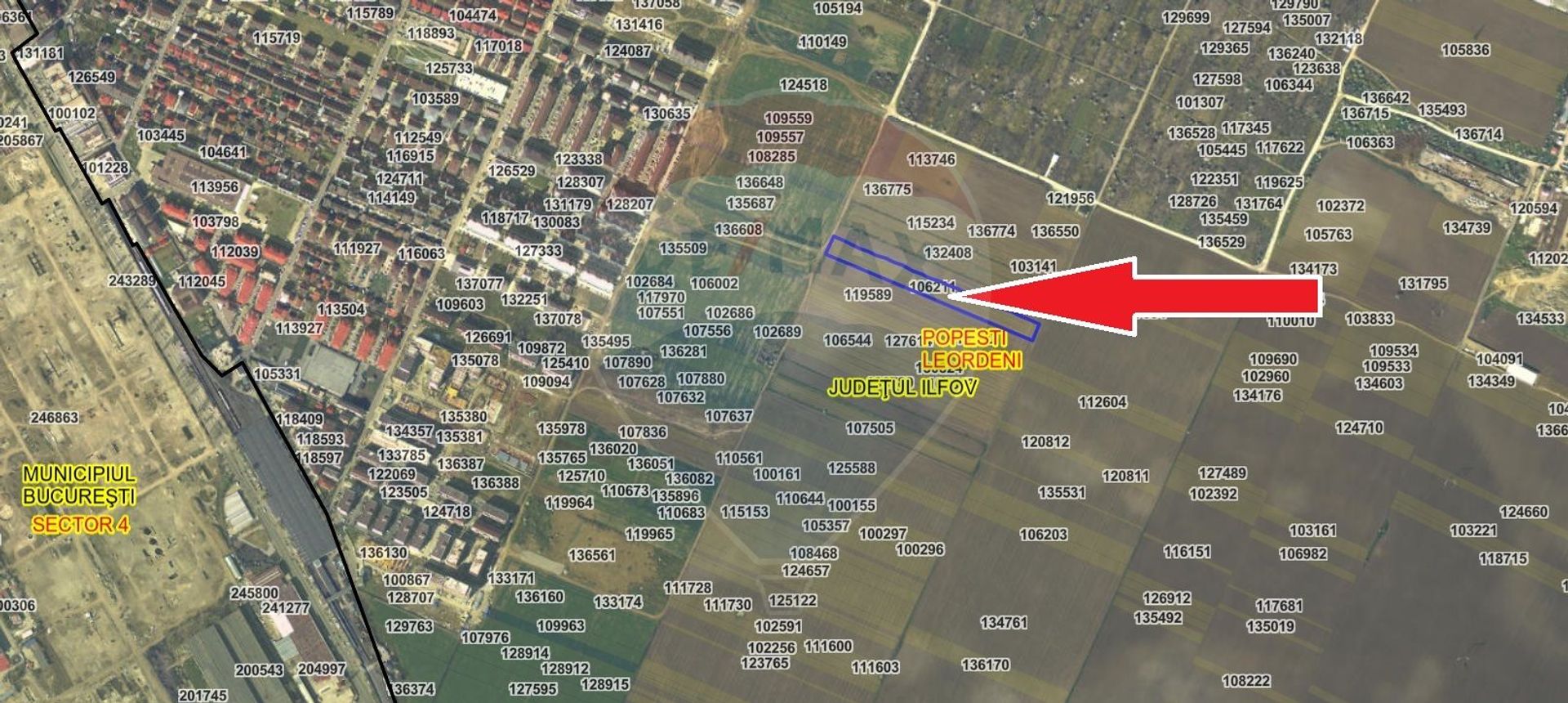 Oferim spre vânzare un teren intravilan în Popești-Leordeni, jud. Ilfov, situat în apropierea stației de metrou Berceni, la limita cu București Sector 4. Proprietatea are suprafața de 12.651 mp și este potrivită pentru dezvoltare rezidențială, proiect imobiliar sau investiție.