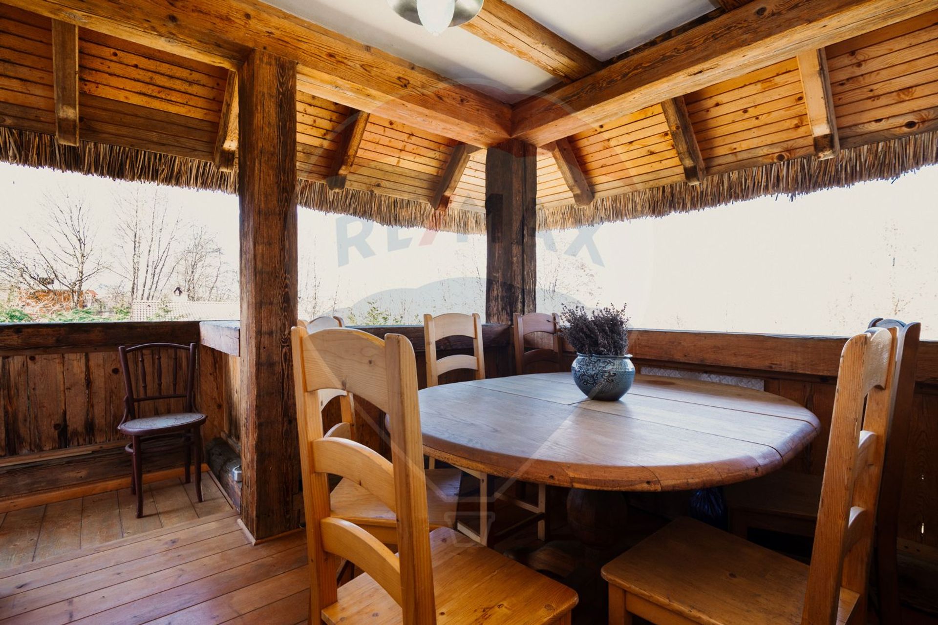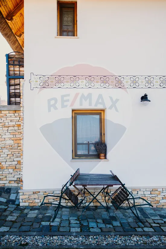 Acoperisul din stuf, grinzile aparente din lemn si materialele naturale atent selectionate contureaza o atmosfera calda, eleganta si autentica, in care fiecare detaliu spune o poveste despre bun gust si echilibru. Spatiile sunt gandite pentru a oferi confort deplin si o armonie vizuala aparte – de la livingul luminos, cu acces catre terasa si natura, pana la dormitoarele intime si zona de relaxare cu sauna pe lemne, creata pentru momente de rasfat si reconectare.