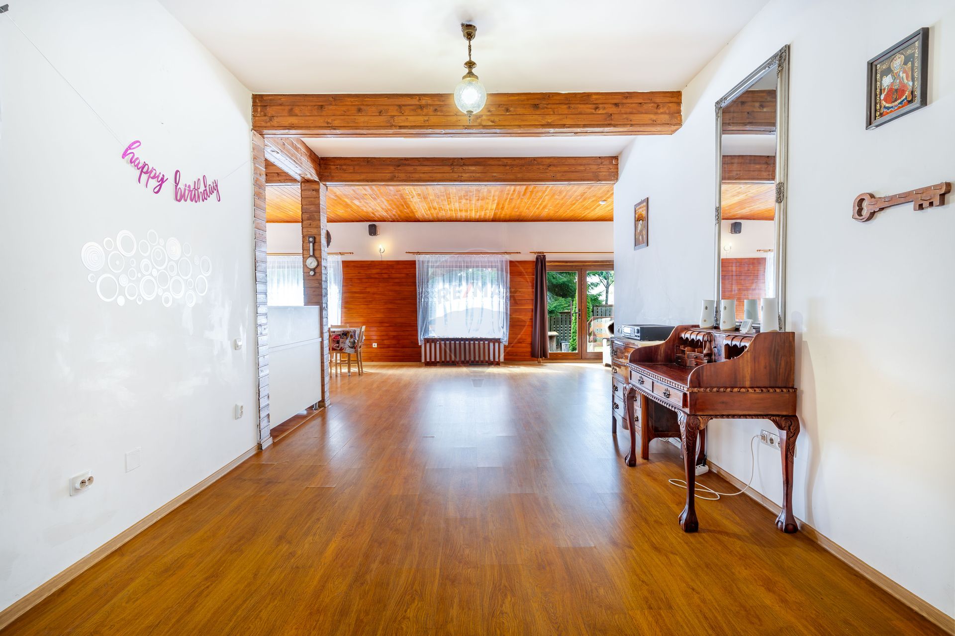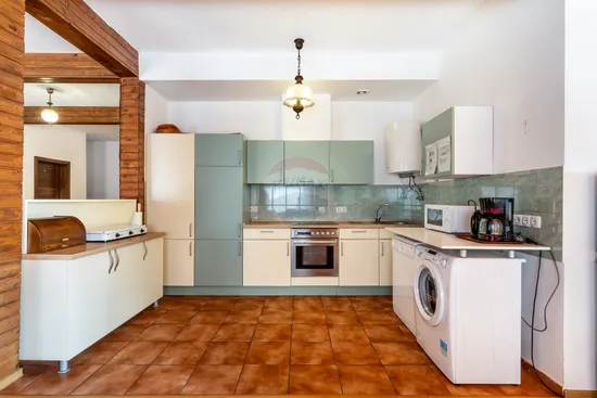 Interior cald si primitor, cu zona de zi generoasa si dining pentru aproximativ 18 persoane. Se preda complet mobilata si utilata.