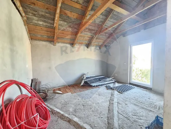 Casa are regim de inaltime Parter + Mansarda si este in stadiu avansat de finisare, cu materiale de calitate, inclusiv finisaje importate din Portugalia. Este zugravita in alb, prizele si intrerupatoarele sunt deja montate.