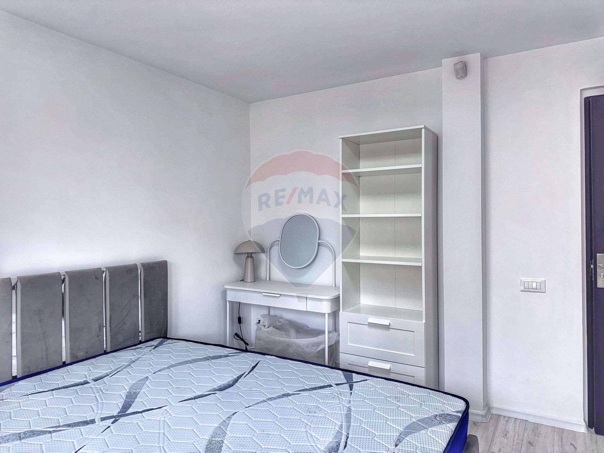 Dormitor: pat matrimonial, dressing generos, birou, Smart TV