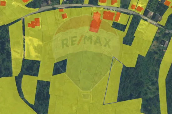 Proprietatea are o suprafață generoasă de 2.710 mp și o deschidere de 30,06 m. Terenul este amplasat în planul secund față de strada principală, în spatele frontului de case existente, pe panta unui deal împădurit, beneficiind de o expunere estică plăcută și de un cadru natural deosebit. Terenul prezintă o înclinație de aproximativ 16°, aspect care oferă o priveliște panoramică deosebită și permite realizarea unor construcții dispuse pe terase, valorificând eficient relieful.
