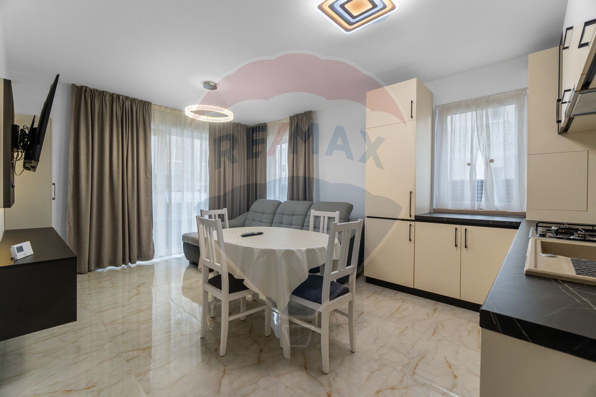 Dotări: Aragaz, Frigider, Mașină de spălat rufe, TV