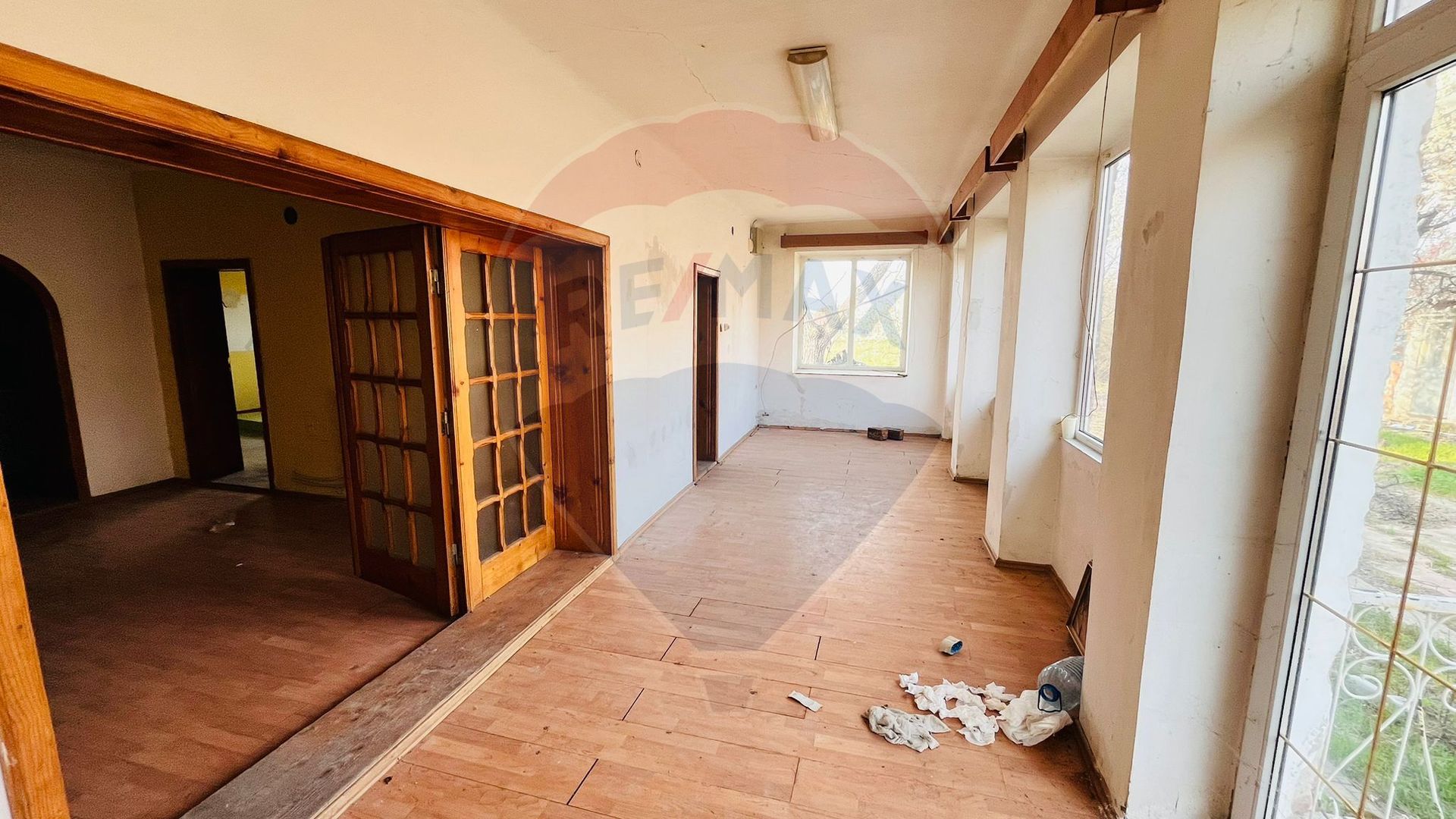 Casa este construită solid, având în interior un rând de văioagă, iar pereții sunt realizați din două rânduri de cărămidă, fațadele fiind din cărămidă. Imobilul necesită renovare, însă oferă o bază bună pentru personalizare.