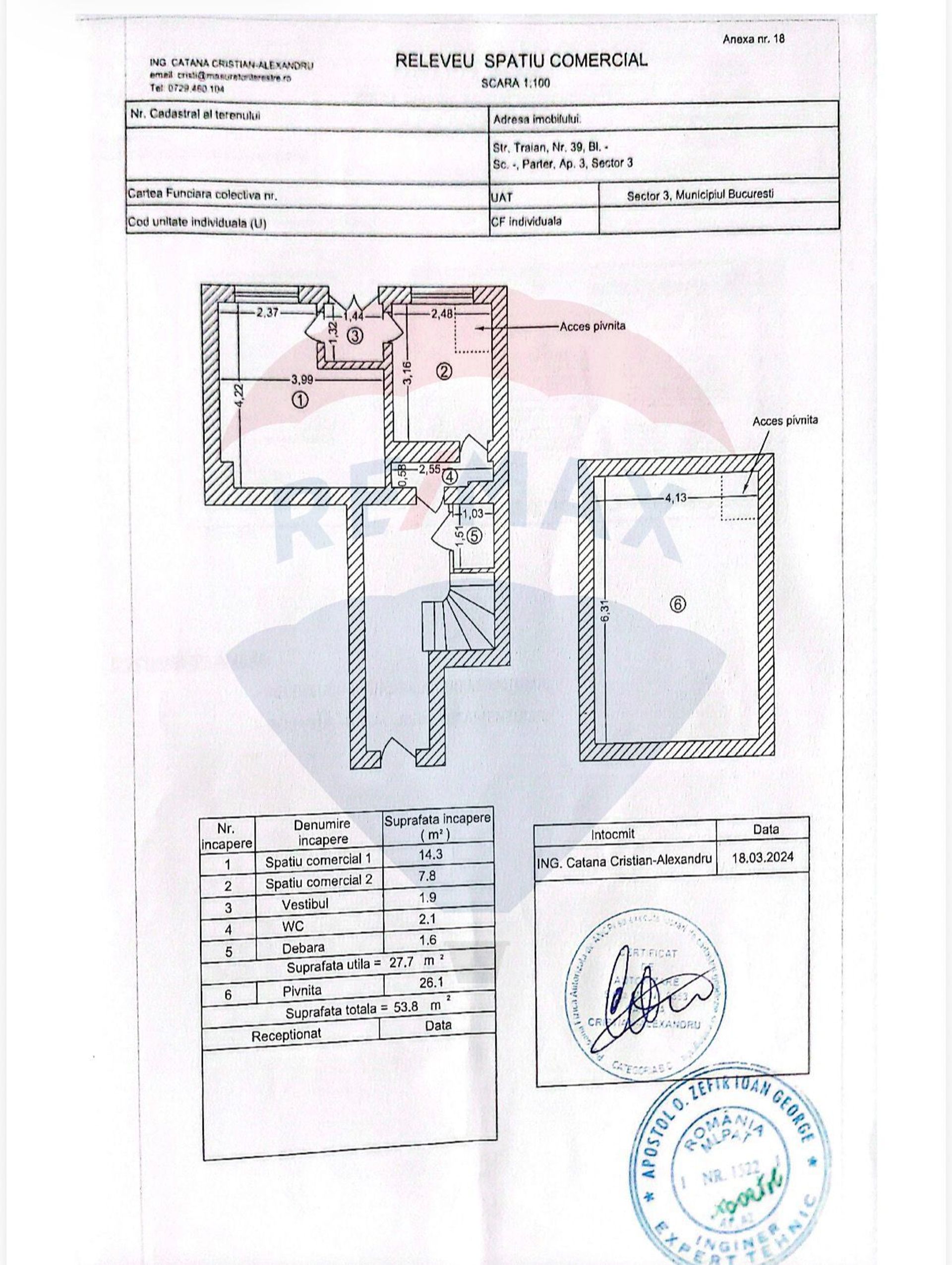 Situat la parterul unui imobil renovat , acest spațiu de aprox. 53.8mp oferă un cadru ideal pentru activități care pun accent pe profesionalism, estetică și confort. ( 27.7 mp Parter si 26.1 mp Pivnita )