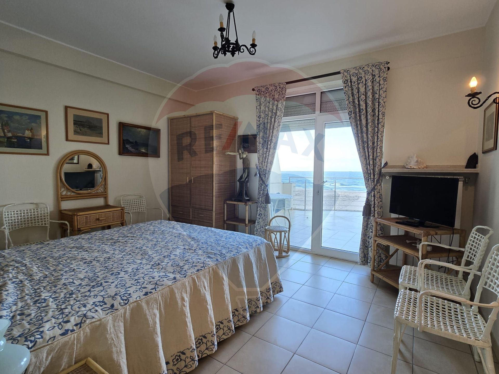 Din acest punct privilegiat, plaja se întinde chiar în fața ta, iar marea — calmă sau neliniștită — îți devine fundal permanent. Nu este doar o vedere… este o stare. Un ritm. O liniște pe care o recunoști imediat.