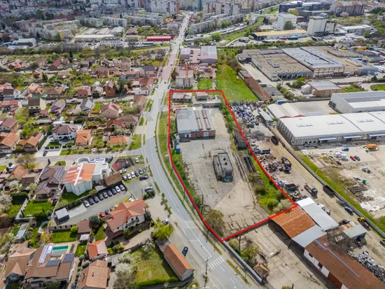Proprietate industrială/comercială de vânzare – Teren 7.619 mp cu hală 1.200 mp – toate utilitățile – Strada Poetului, Arad