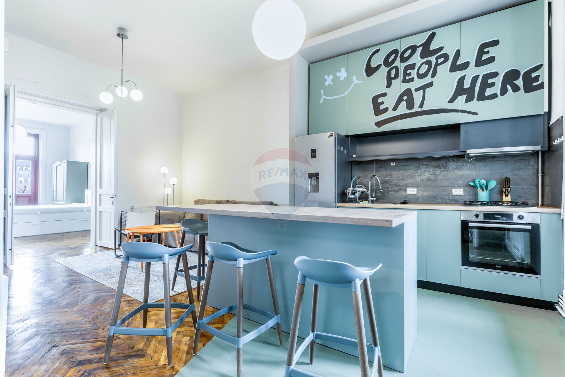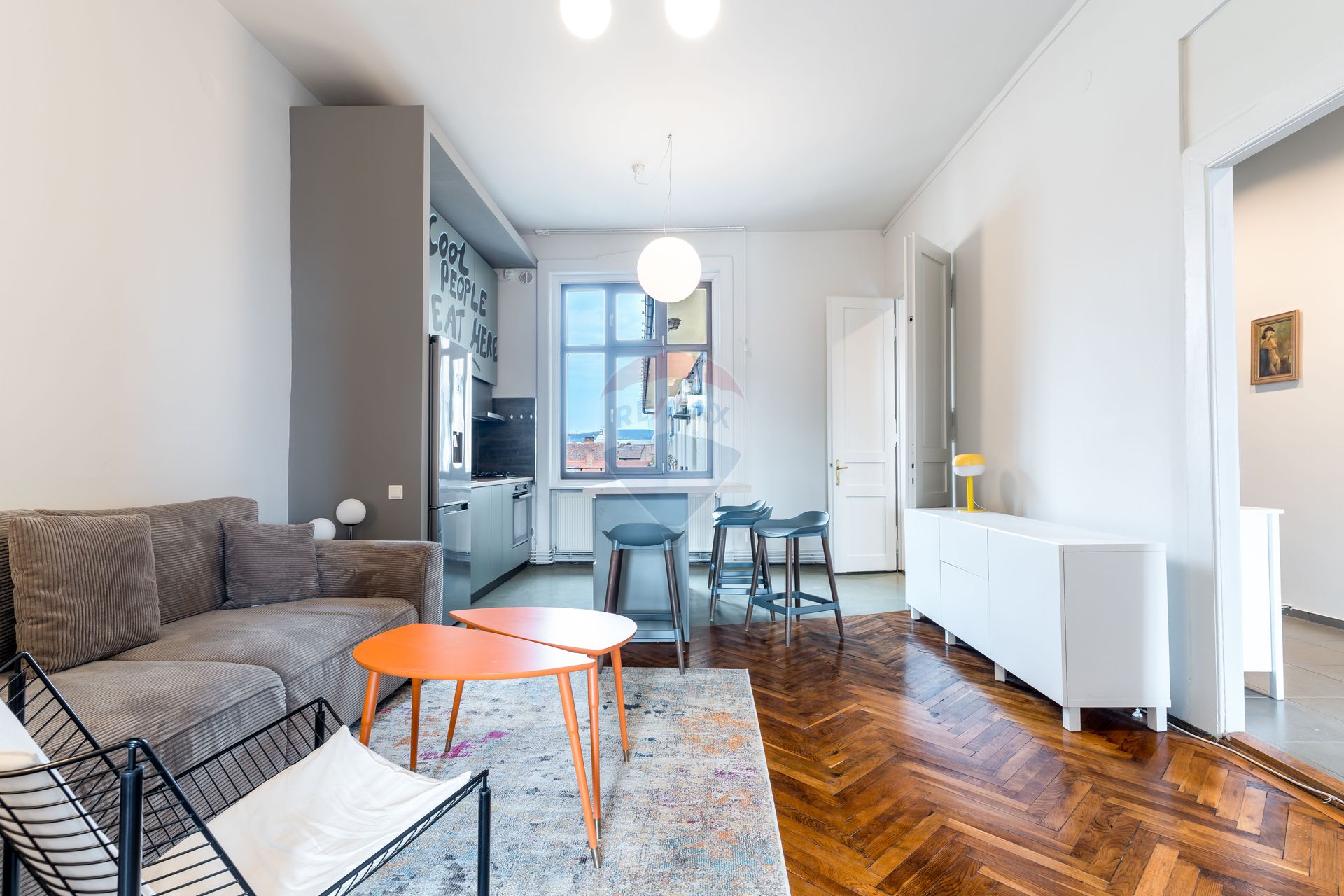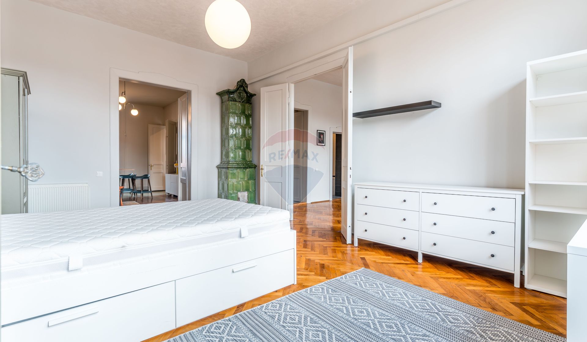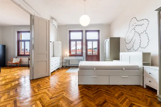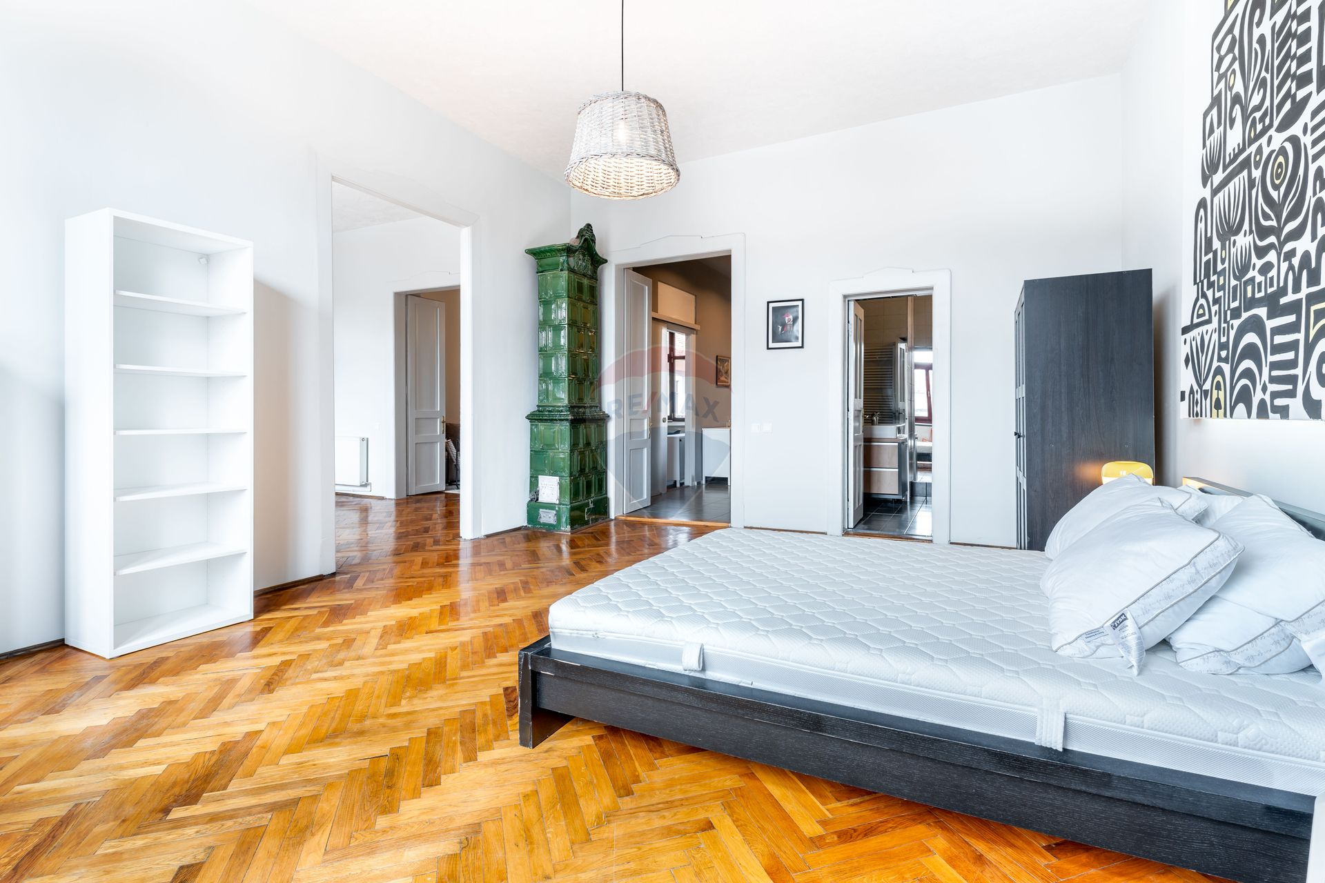Situat într-o zonă ultracentrală, pe o stradă cu trafic redus, apartamentul se remarcă prin înălțimea impresionantă a tavanelor, de peste 3 metri, care conferă spațiului luminozitate și un aer nobil. Ușile înalte din lemn masiv se armonizează perfect cu parchetul din lemn masiv, conturând un ambient elegant și distins.