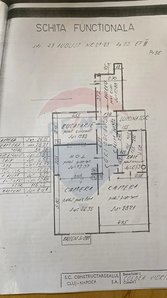 -baie de serviciu, prevăzută cu duș și geam