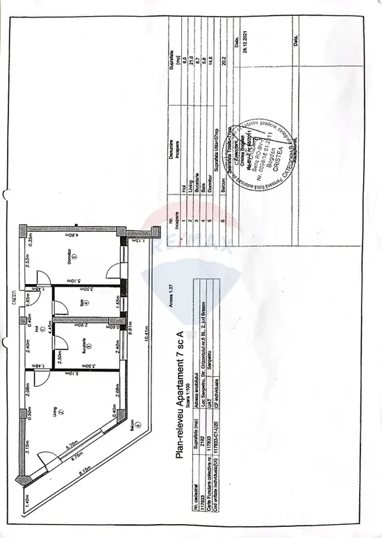 -balcon/terasă: aproximativ 20 mp