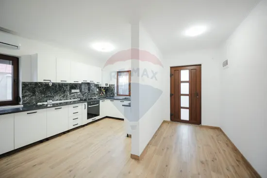 Bucătărie mobilată și utilată (aragaz, frigider, mașină de spălat vase)