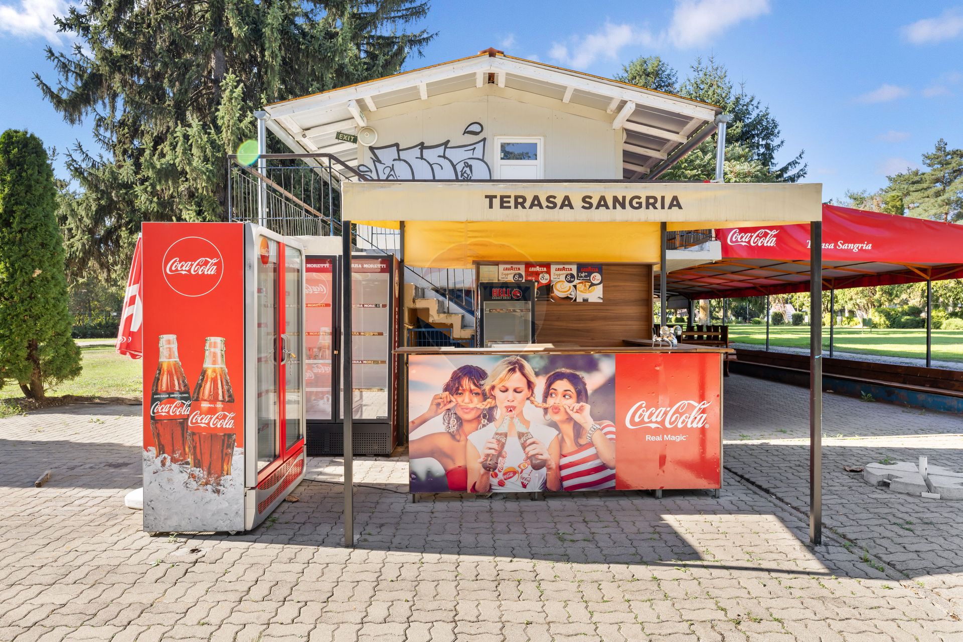 Cladirea are o suprafata de 75mp si este formata din bucatarie, vestiar, doua spatii de depozitare, grup sanitar si la exterior se afla barul pentru pregatirea bauturilor.