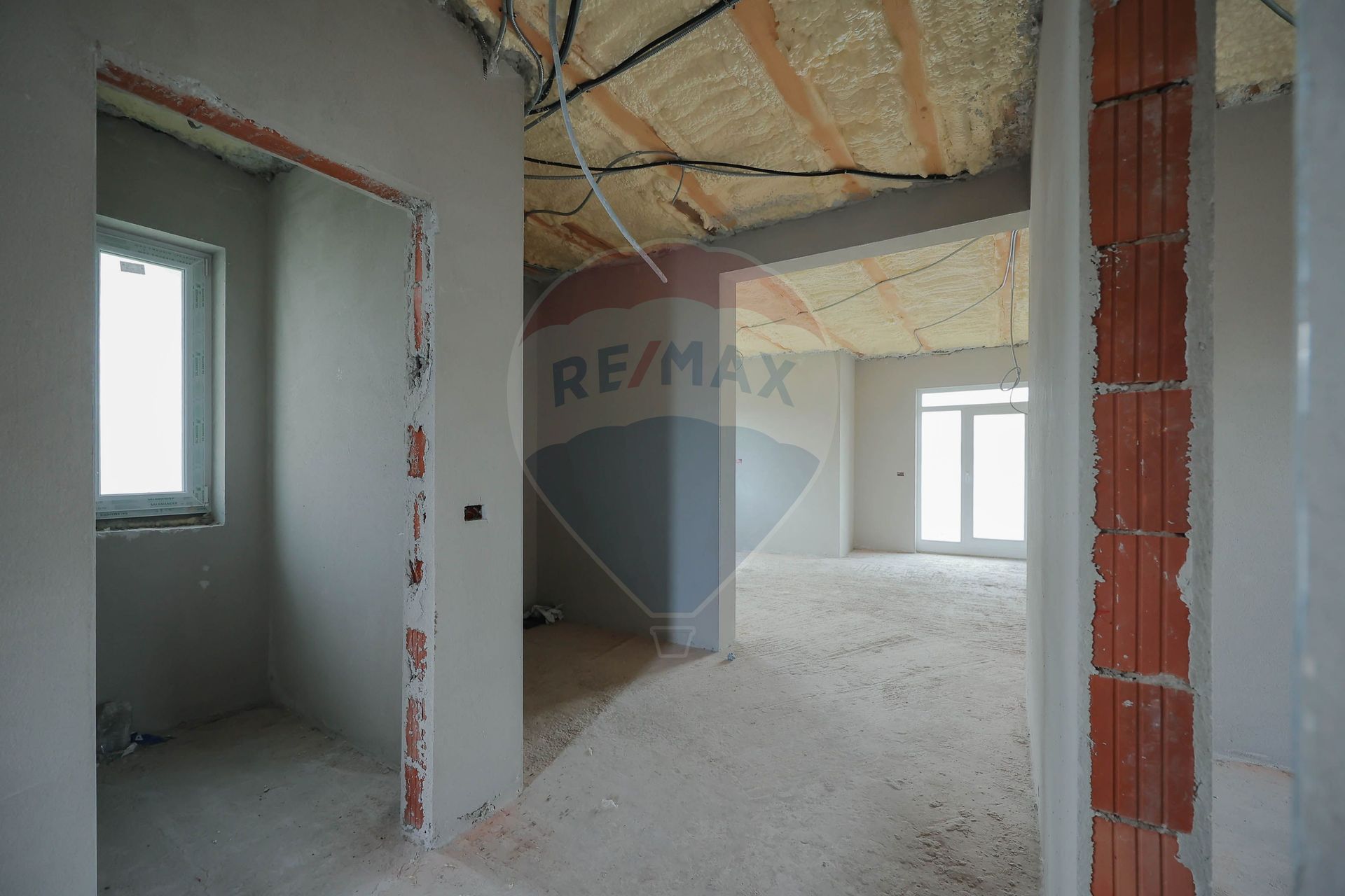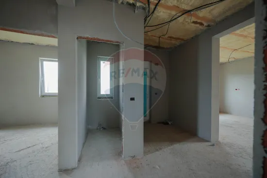 Imobilul se află în stadiu de semifinisat, cu instalația electrică deja realizată, iar tavanul este în curs de finalizare, oferind viitorului proprietar posibilitatea de a personaliza finisajele după propriile preferințe.