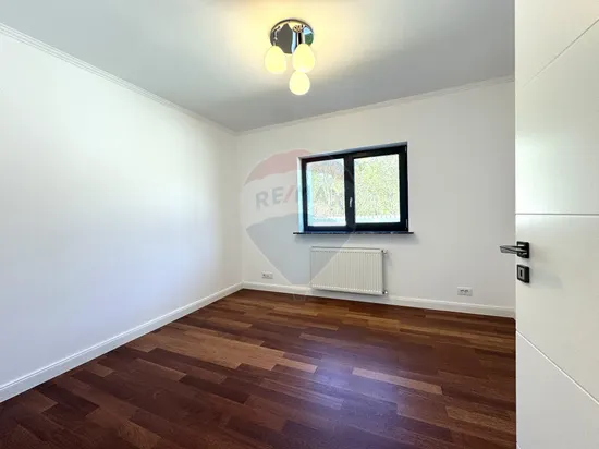 - Parterul te întâmpină cu un hol generos, o bucătărie modernă, open space, complet amenajată și utilată, cu insulă centrală, cameră de dressing, baie și un living inalt, spectaculos, ce oferă acces direct către terasa și zona de relaxare cu BBQ exterioara.