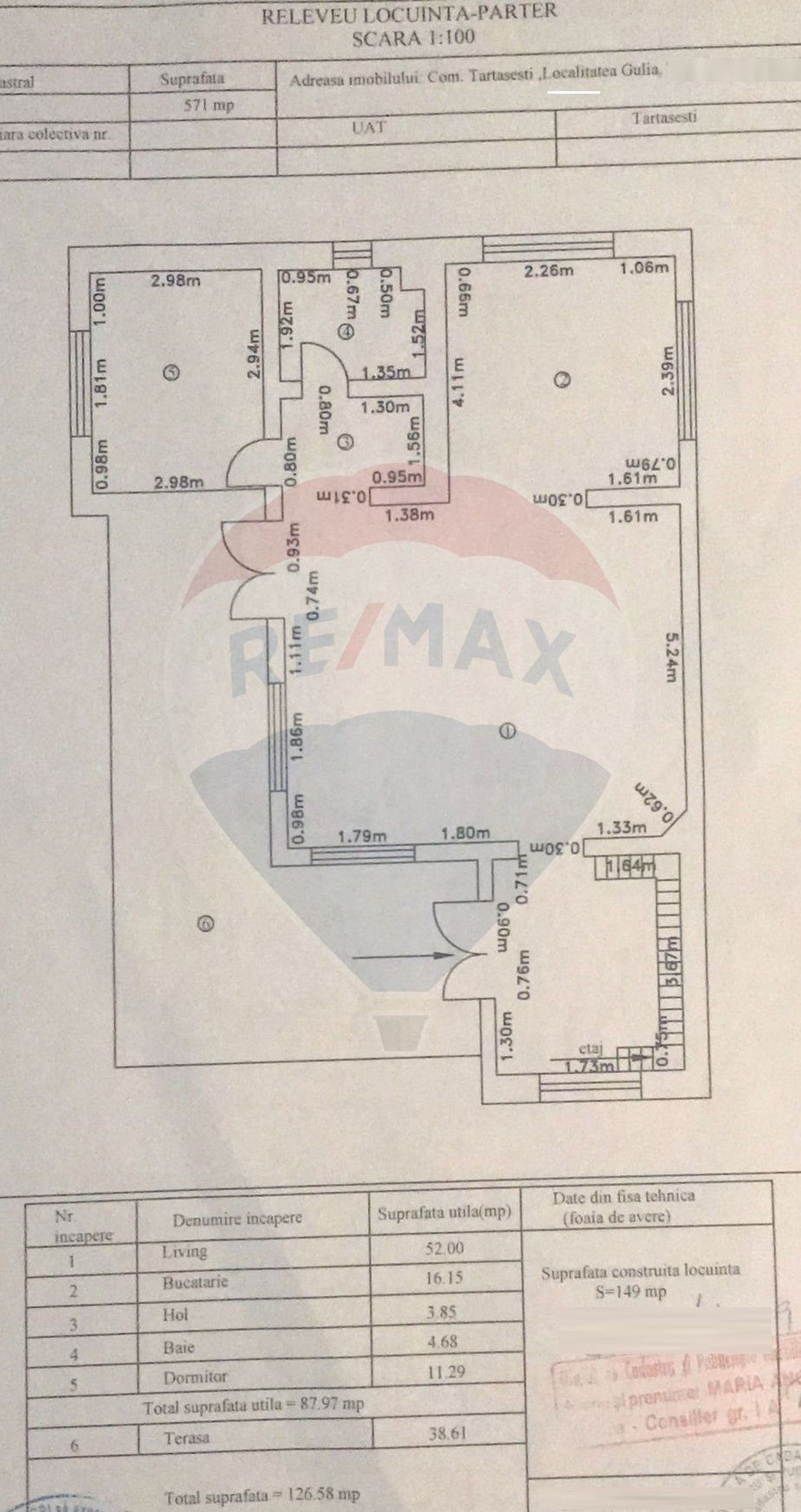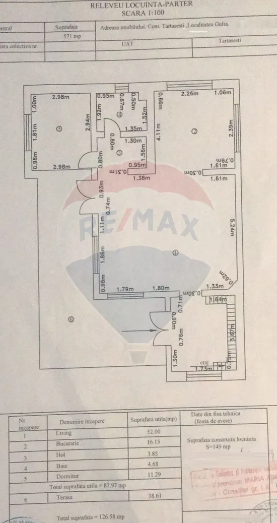 Parter: living, dormitor, bucatarie, grup sanitar