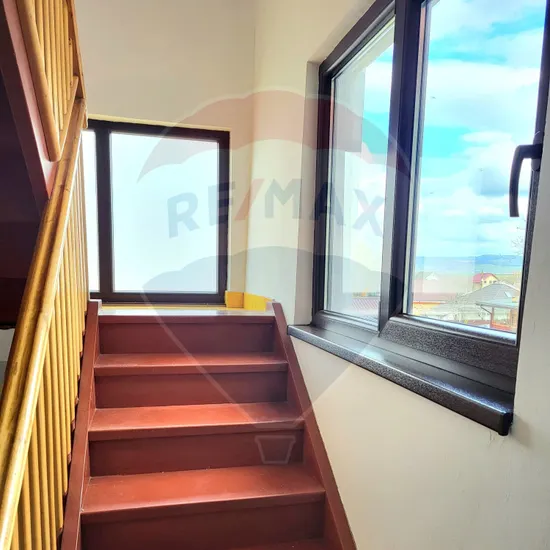 Interiorul, finisat într-un stil modern parțial și pe alocuri clasic, dar întreținut, este conceput pentru funcționalitate și confort. Compartimentarea include un living primitor, două dormitoare spațioase, două băi, o bucătărie deschisă, complet mobilată și utilată, o cămară foarte generoasă, două holuri. În plus, imobilul are o casă a scării ce deservește nivelurile parter, etaj și mansardă. Mansarda este folosită ca magazie, dar poate fi amenajată și destinată locuirii (cca 80 mp). De asemenea, imobilul are o terasă pe două laturi și 2 balcoane la mansardă. Accesul se poate realiza prin mai multe intrări, opțional. Proprietatea se vinde complet mobilată, fiind pregătită pentru mutare imediată.