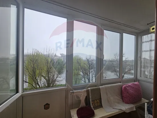 Cu o suprafata de 85 mp, se compune din 3 camere, 2 balcoane, 2 bai, 2 boxe la subsol, 2 holuri, bucatarie. Complet decomandat, detine tamplarie de lemn cu geamuri termopan, parchet slefuit si lacuit, centrala termica pe gaz, vopsea lavabila, balconul cu vedere catre raul Timis este inchis in termopan iar celalalt balcon este deschis cu vedere spre spatele Universitatii Dragan. Se preda mobilat si utilat, fara obiectele personale.