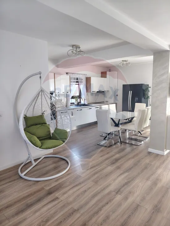 Locuința este amenajată în stil contemporan, cu finisaje de calitate și dotări moderne: plită si cuptor electric, hotă, frigider nou, mașină de spălat vase (capacitate mare) și mașină de spălat rufe.