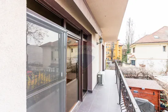 Va propun spre închiriere un apartament rafinat, cu o suprafață totală de 128 mp, situat la etajul 1 al unui imobil boutique cu 4 etaje, construit în 2013, pe strada Barbu Delavrancea, într-una dintre cele mai exclusiviste zone ale Bucureștiului, adiacent Kiseleff. Apartamentul este complet mobilat și dotat cu tot ce este nevoie, fiind gata să își primească noii chiriași.