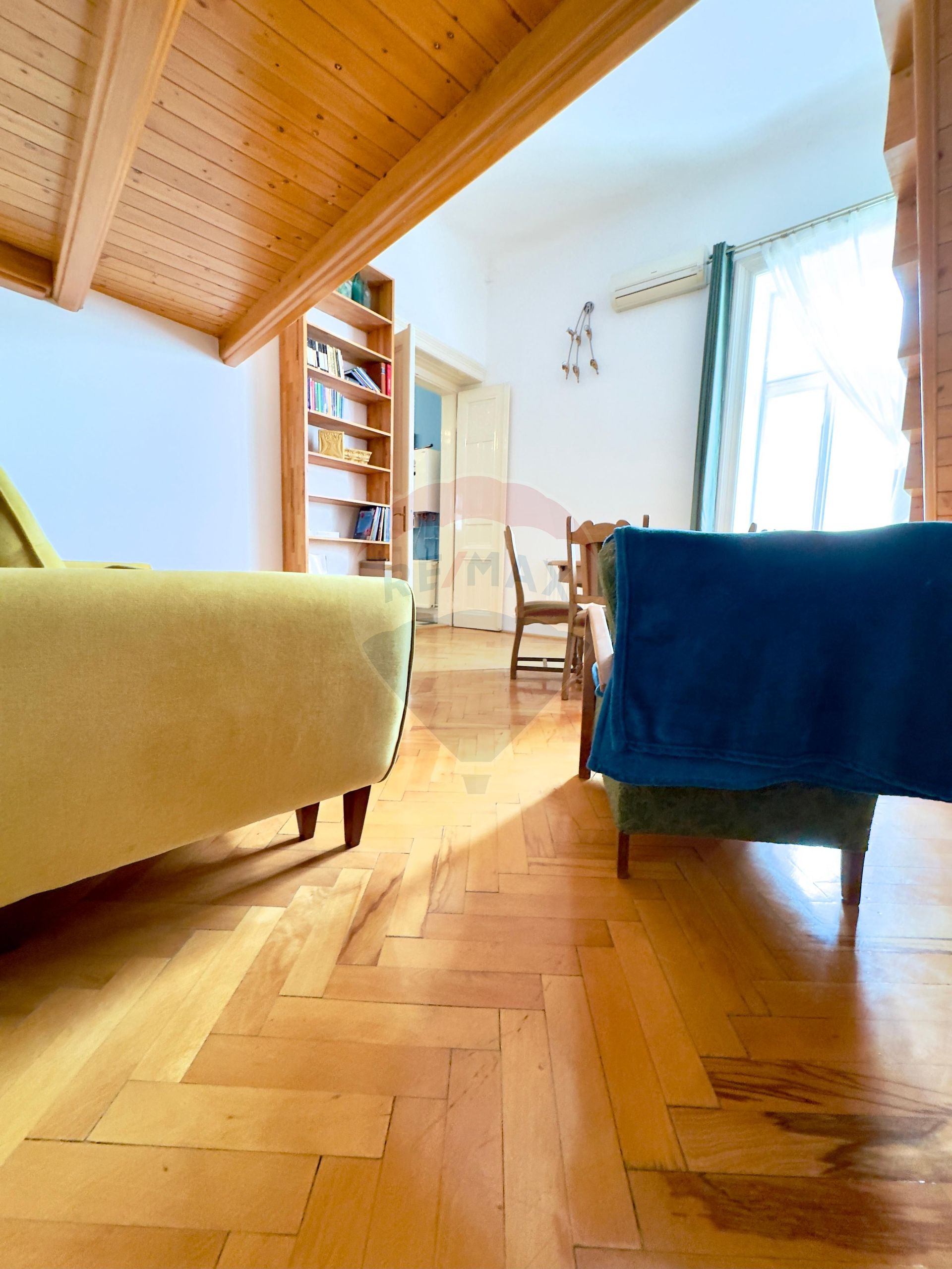 Zona de zi este completată de un design aparte, cu accente vintage și mobilier confortabil, ideal pentru relaxare sau primirea oaspeților.