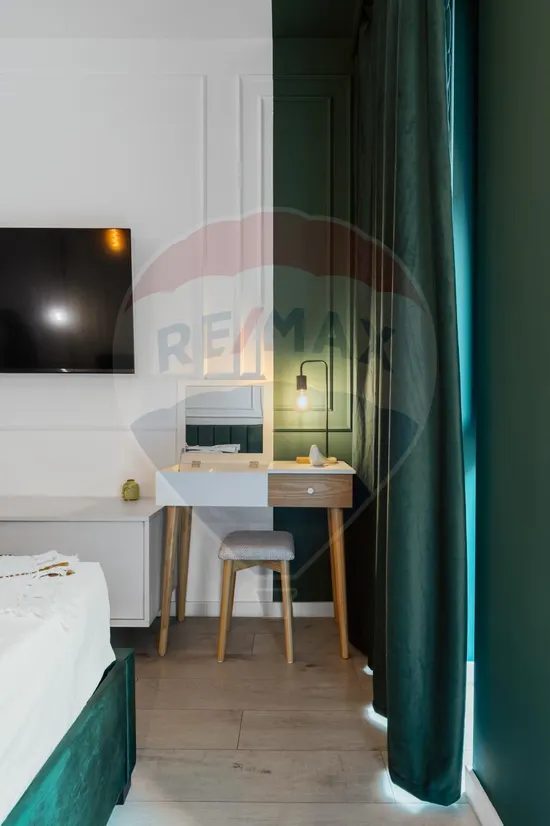 Va prezentam spre inchiriere un apartament de 2 camere, duplex (parter + etaj), amenajat de architect designer de interior, cu finisaje si mobilier din gama premium, situat intr-o locatie deosebita, in complexul rezidential de tip boutique WIN Herastrau, aflat in proximitatea parcului Herastrau.