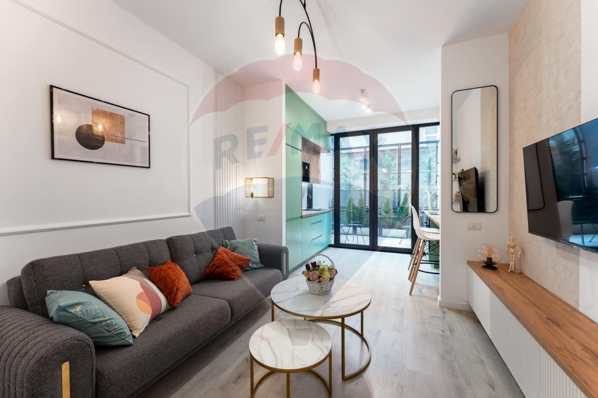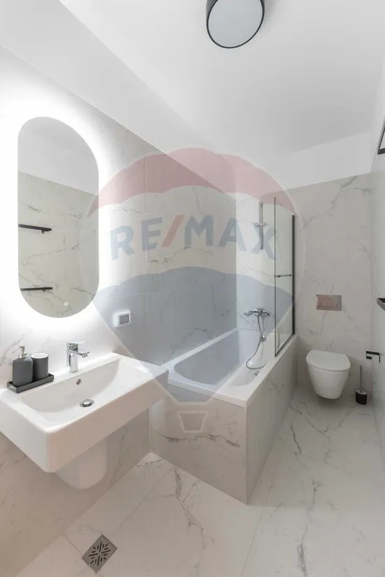 Apartamentul este compus dintr-un living generos si bucatarie deschisa, un dormitor luminos, 2 bai (parter + etaj) cu finisaje deosebite si o terasa spatioasa cu loc de relaxare. Apartamentul are o suprafata utila de 50 mp si construita de 70 mp si este complet mobilat si utilat. Beneficiati de incalzire in pardoseala, aparate de aer conditionat in ambele camere cat si alte facilitati moderne (masina de spalat vase/rufe/uscator/televizoare in ambele camere/cuptor/cuptor microunde/plita cu inductie, toate branduri premium precum Samsung, LG, Bosch etc.).