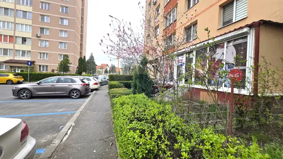 Vizibilitatea locației este susținută de vitrina din termopan cu o deschidere de 7 metri, care permite o promovare eficientă către trecători. Amplasarea într-o zonă rezidențială densă, caracterizată prin imobile cu regim mare de înălțime, asigură o bază solidă de clienți formată preponderent din familii. Această configurație a cartierului generează un trafic constant și previzibil, ideal pentru afaceri care se bazează pe consumul casnic sau servicii.