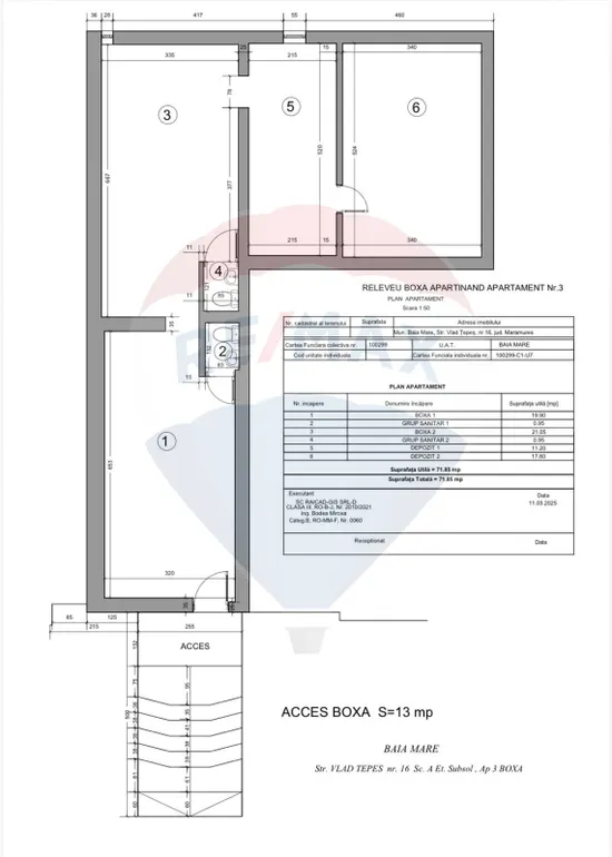Vă propunem spre vânzare un spațiu cu potențial, situat la demisolul unui imobil, cu o suprafață utilă de 71,85 mp, compartimentat în 3 încăperi tip vagon și 2 grupuri sanitare.