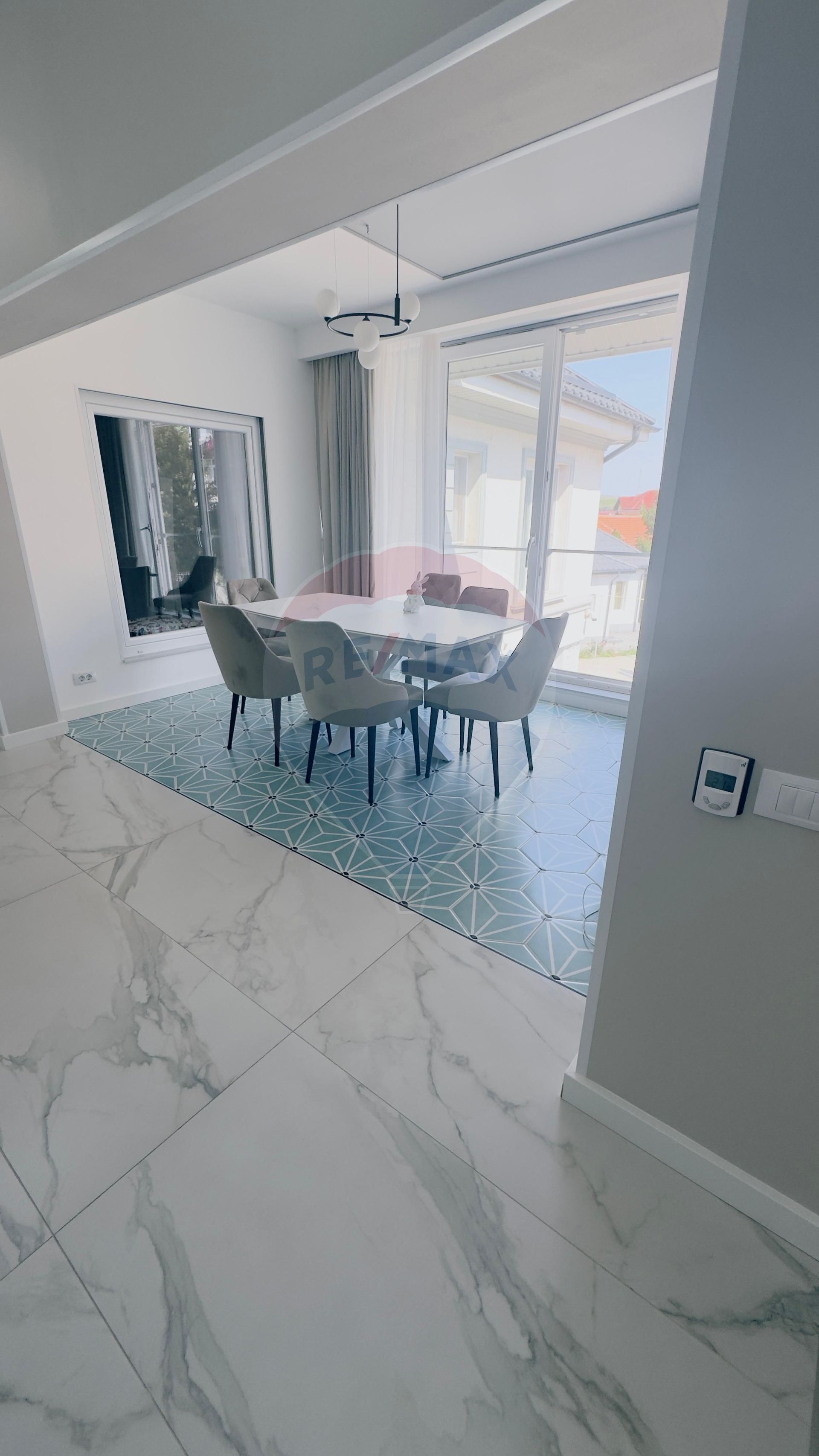 Confortul este completat de un sistem audio integrat în întreaga casă, inclusiv în băi, încălzire în pardoseală pentru un climat optim în orice sezon și curent trifazic, pregătit inclusiv pentru încărcarea autovehiculelor electrice. În exterior, proprietatea dispune de o terasă de aproximativ 30 mp, complet utilată, cu zonă de grătar, ideală pentru relaxare și socializare.