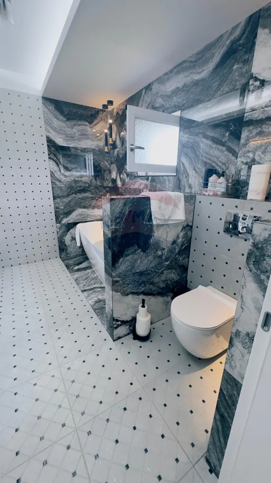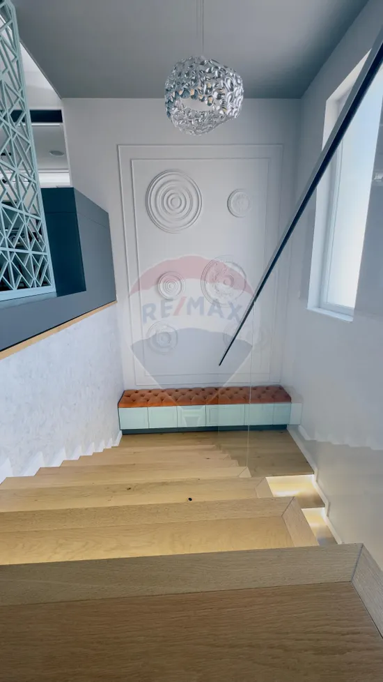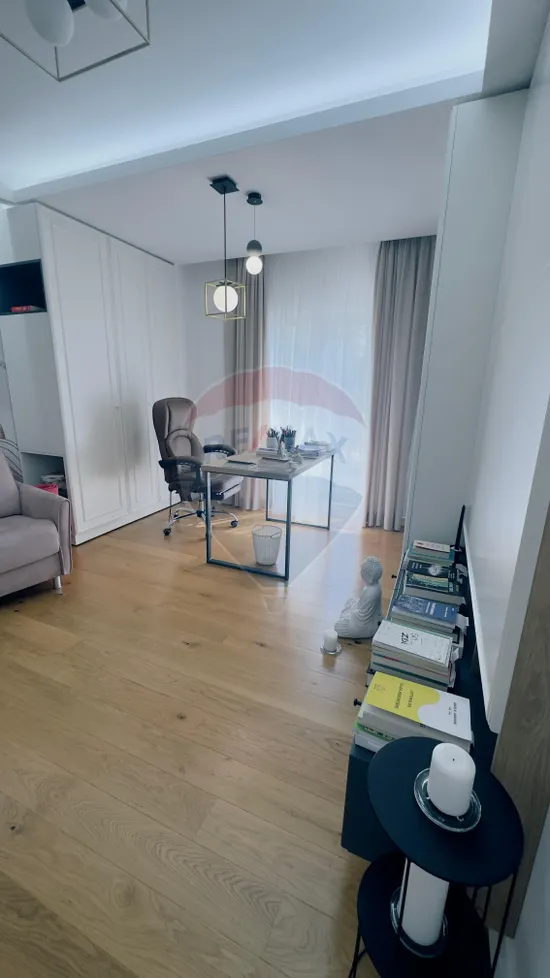 Etajul este destinat zonei rezidențiale și impresionează printr-un design rafinat, realizat cu ajutorul unui designer, unde fiecare detaliu a fost atent ales pentru a crea o ambianță premium. Spațiul este generos și armonios compartimentat, incluzând două livinguri primitoare, zonă de dining, bucătărie open space modernă, două dormitoare matrimoniale fiecare cu baie proprie și dressing, precum și o baie suplimentară pe hol. Finisajele sunt de cea mai înaltă calitate, ușile interioare din lemn masiv aduse din Ucraina și ușile filomuro pentru dressinguri contribuind la un design unitar și sofisticat.