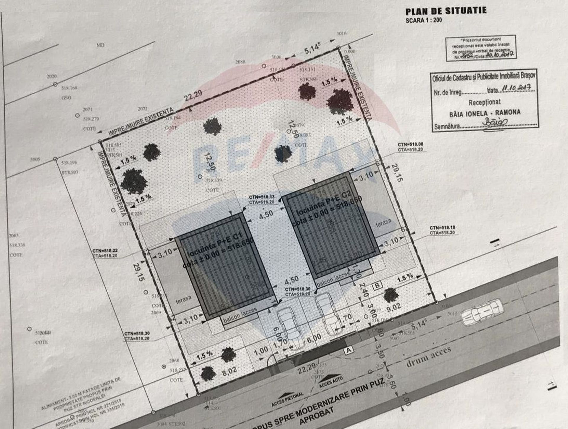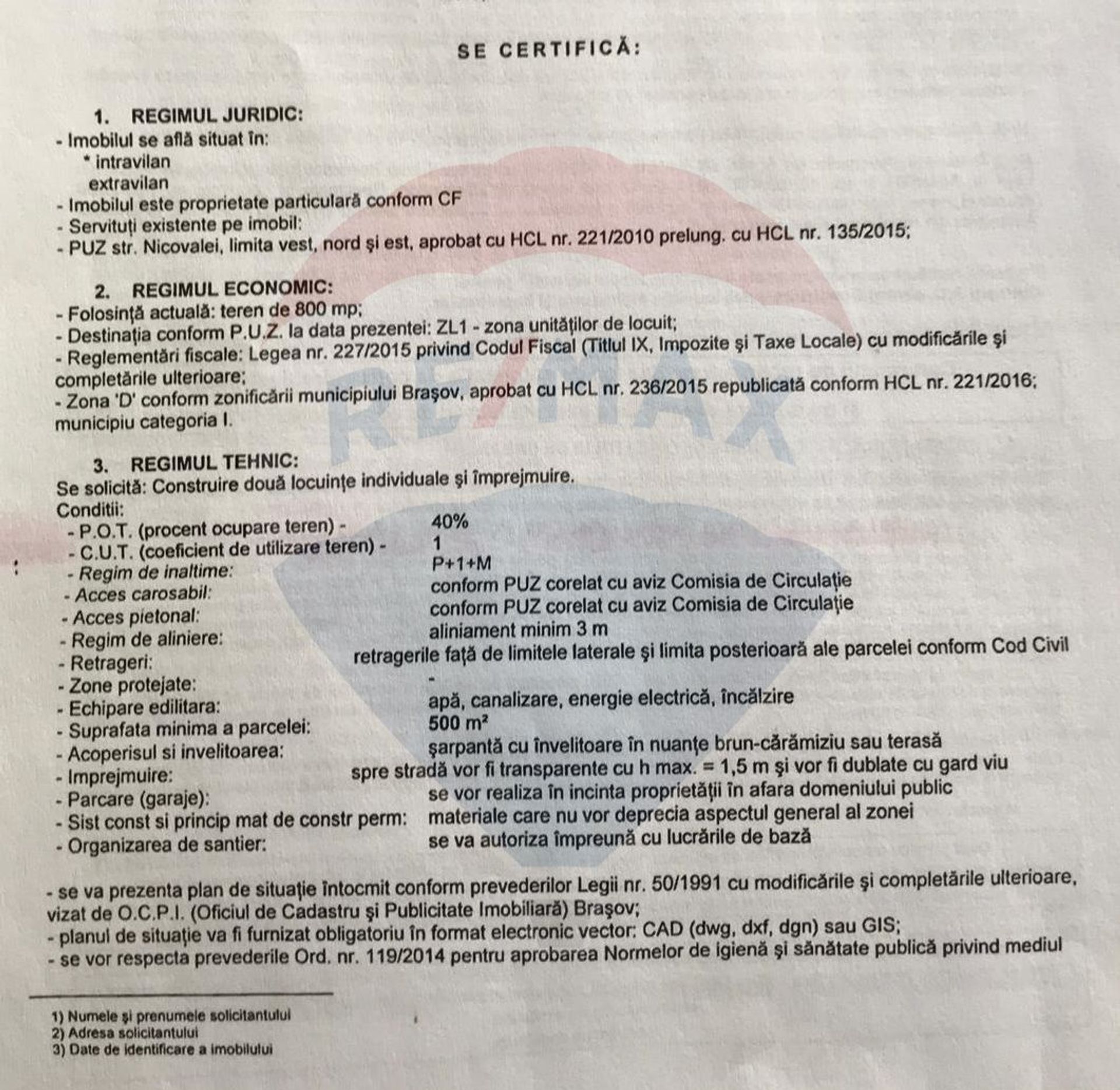 Compania RE/MAX Central va propune in vederea achizitiei un teren in suprafata de 800mp situat in intravilanul mun Brasov, cartier Stupini, str Barsei nr 12 (inainte de str Cozia). Frontul stradal este 27m la un drum lateral din str Barsei, recent amenajat. Este pozitionat intre 2 case noi.