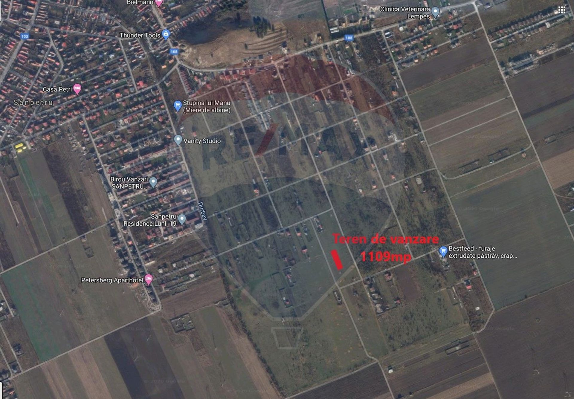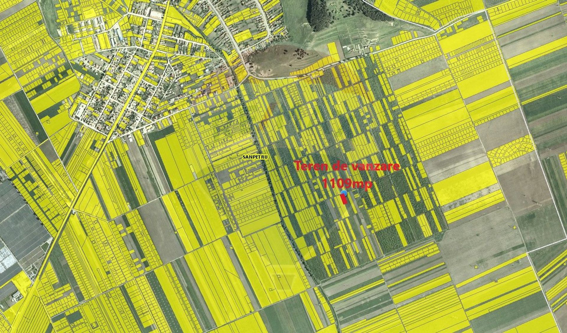 Compania RE/MAX Central Brasov va propune in sistem de reprezentare exclusiva si cu comision 0% de la cumparator un teren situat in intravilanul comunei Sanpetru, zona fostei livezi, vis-a-vis de Rezervatia naturala Dealul Lempes. Terenul are o suprafata de 1109mp avand o deschidere stradala de 18,10m la strada Smochinului(strada dintre randul 5 si 6 de parcele din Livada).
