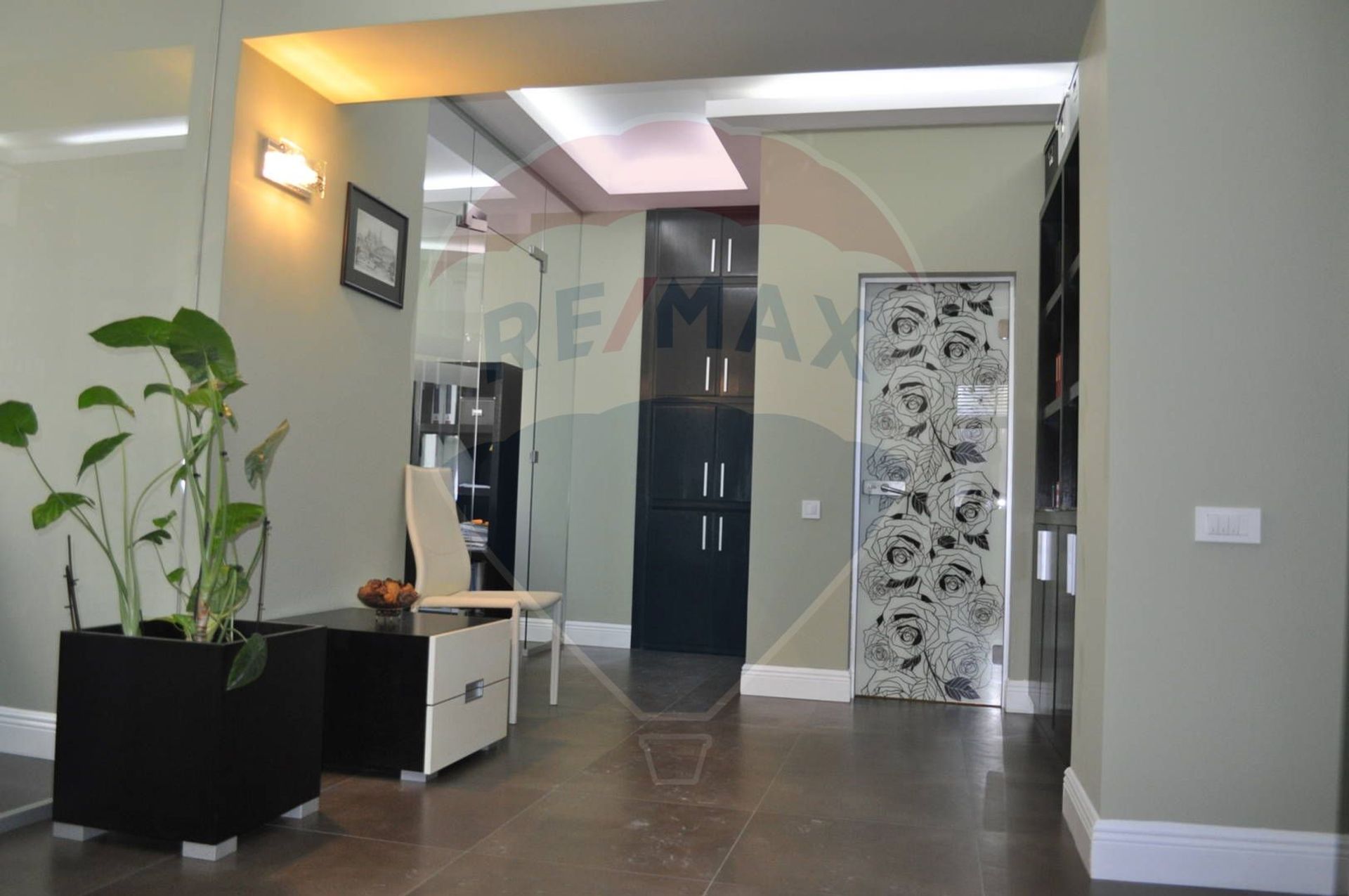 Dotarile si finisajele spatiului sunt de foarte buna calitate, dintre care amintim: centrala termica proprie Viessmann,pereti despartitori din sticla securizata,senzori fum,camere supraveghere,aer conditionat etc.