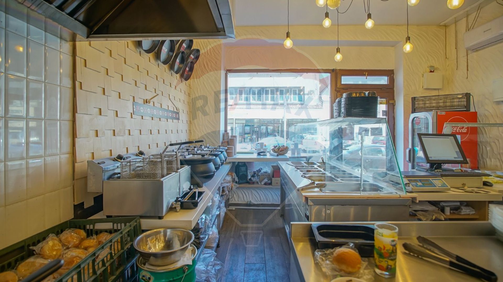 Compartimentat în două încăperi și un grup sanitar, beneficiază de o vitrină cu deschidere de 2.25 mp, precum și sistem de supraveghere cu camere video și alarmă.