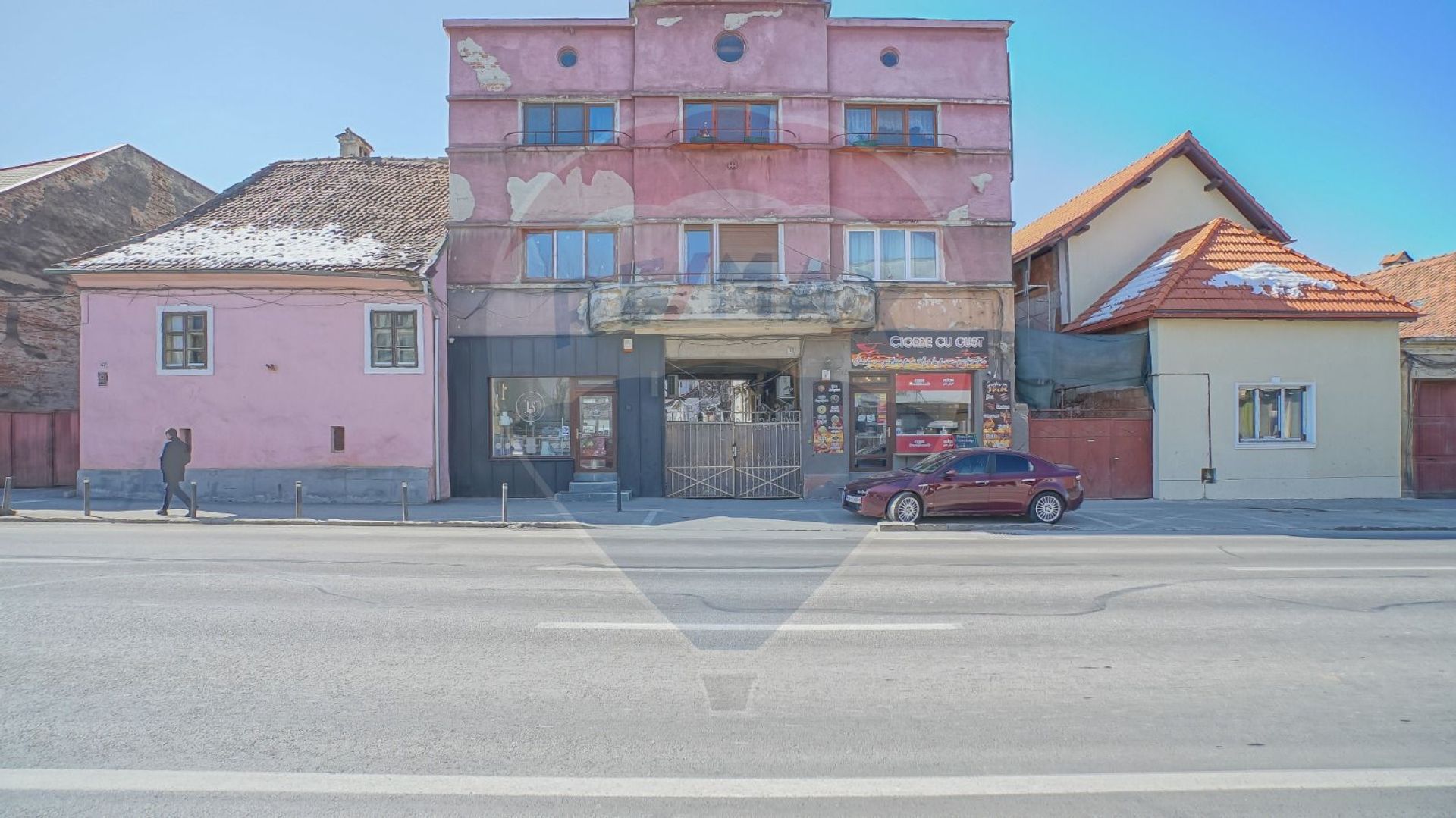 Gandit practic, imobilul are două intrări, una direct din stradă, pentru clienți, și o alta din lateralul curții interioare, pentru marfă.