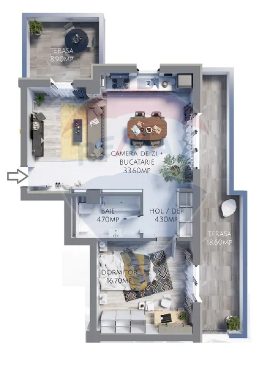 Descoperă puterea creativității tale! Cu ajutorul instrumentului nostru de House Staging Virtual, poți redecora și personaliza GRATUIT orice cameră din proprietatea de mai sus. Experimentează cu mobilier, culori, texturi si stiluri diverse si vezi care dintre acestea ti se potriveste.
