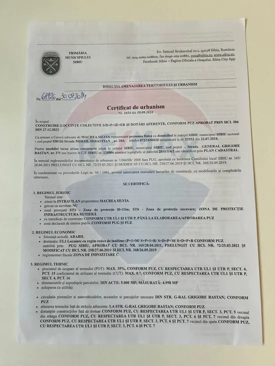 • Urbanism: Certificat de urbanism