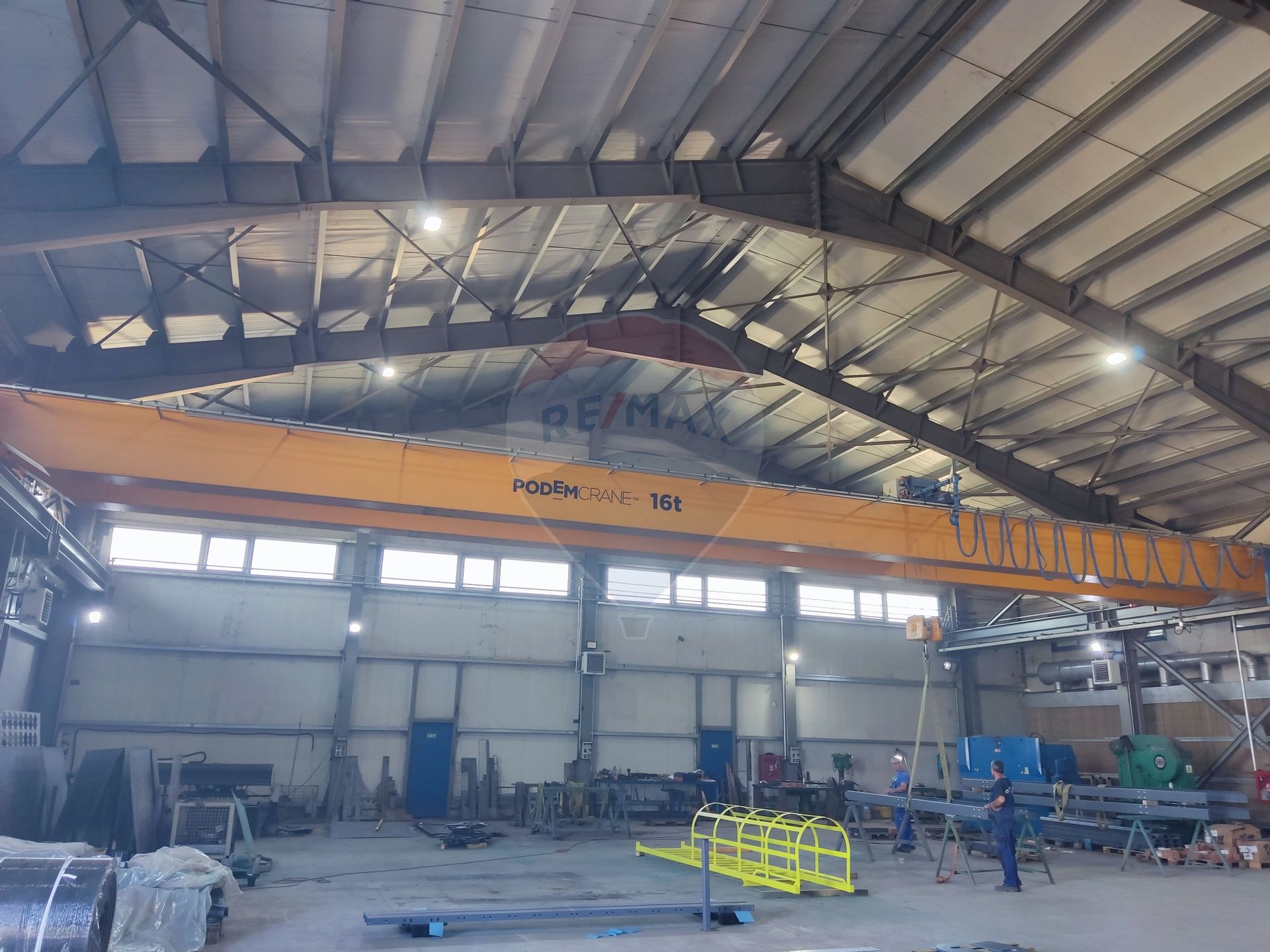 The hall was designed and built for production activities with a solid resistance structure, it is provided with 2 overhead cranes, one with a lifting capacity of 10 tons and another with a lifting capacity of 16 tons. Given its configuration, it can be easily divided into 2 or more modules, each with separate access from the outside.