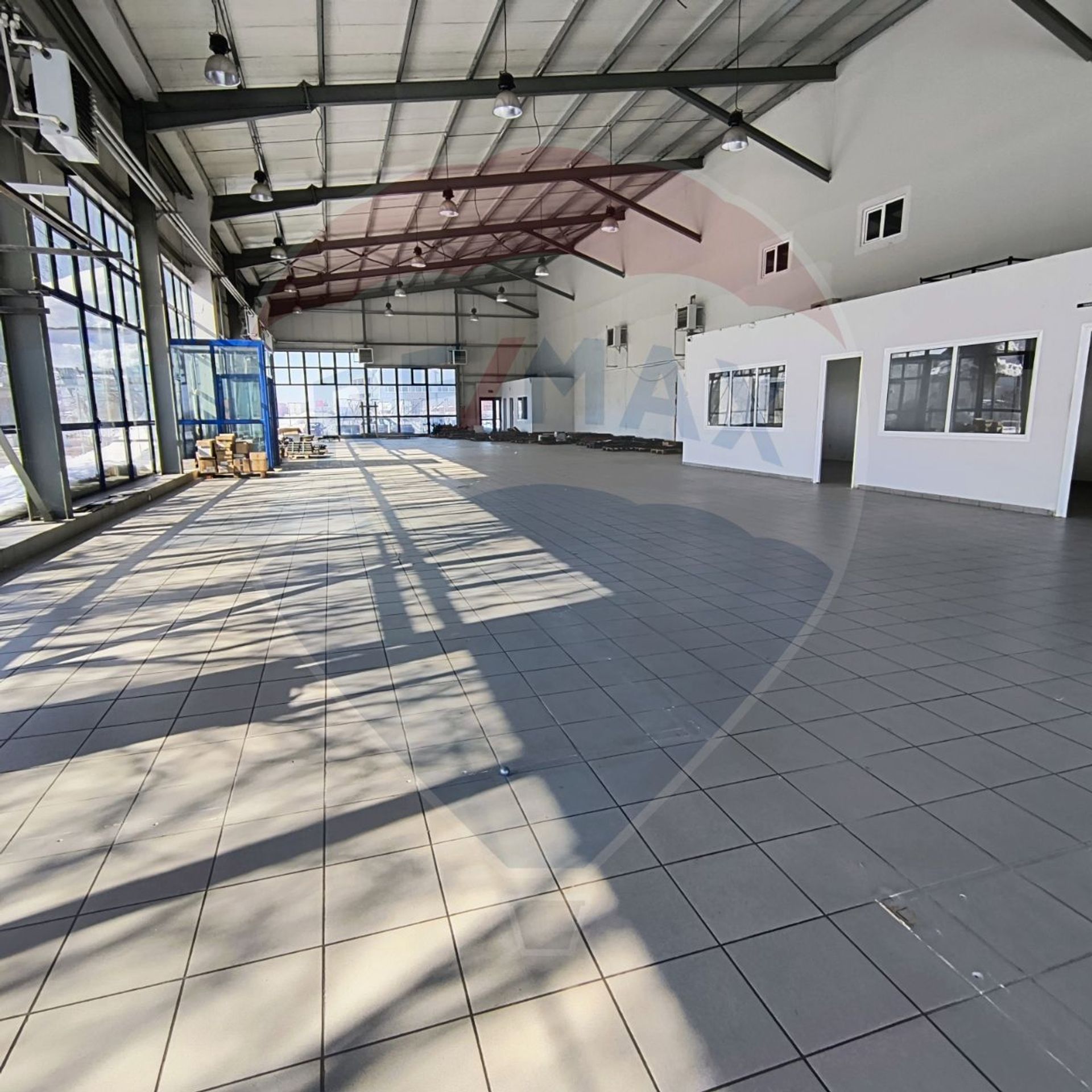 The hall has a generous opening and excellent visibility to DN 2 Bucharest-Urziceni, one of the busiest roads in Romania.