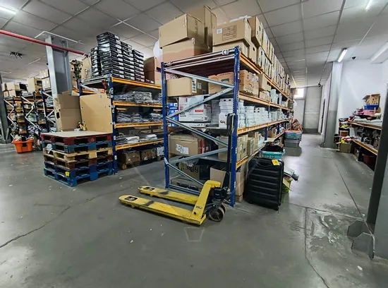 The warehouse has an area of 2300 sqm with a height of 10 m and a free opening of 24 m, it is equipped with the best quality shelves that provide storage capacity for 2000 Euro pallets and has 2 electric forklifts of very good quality.