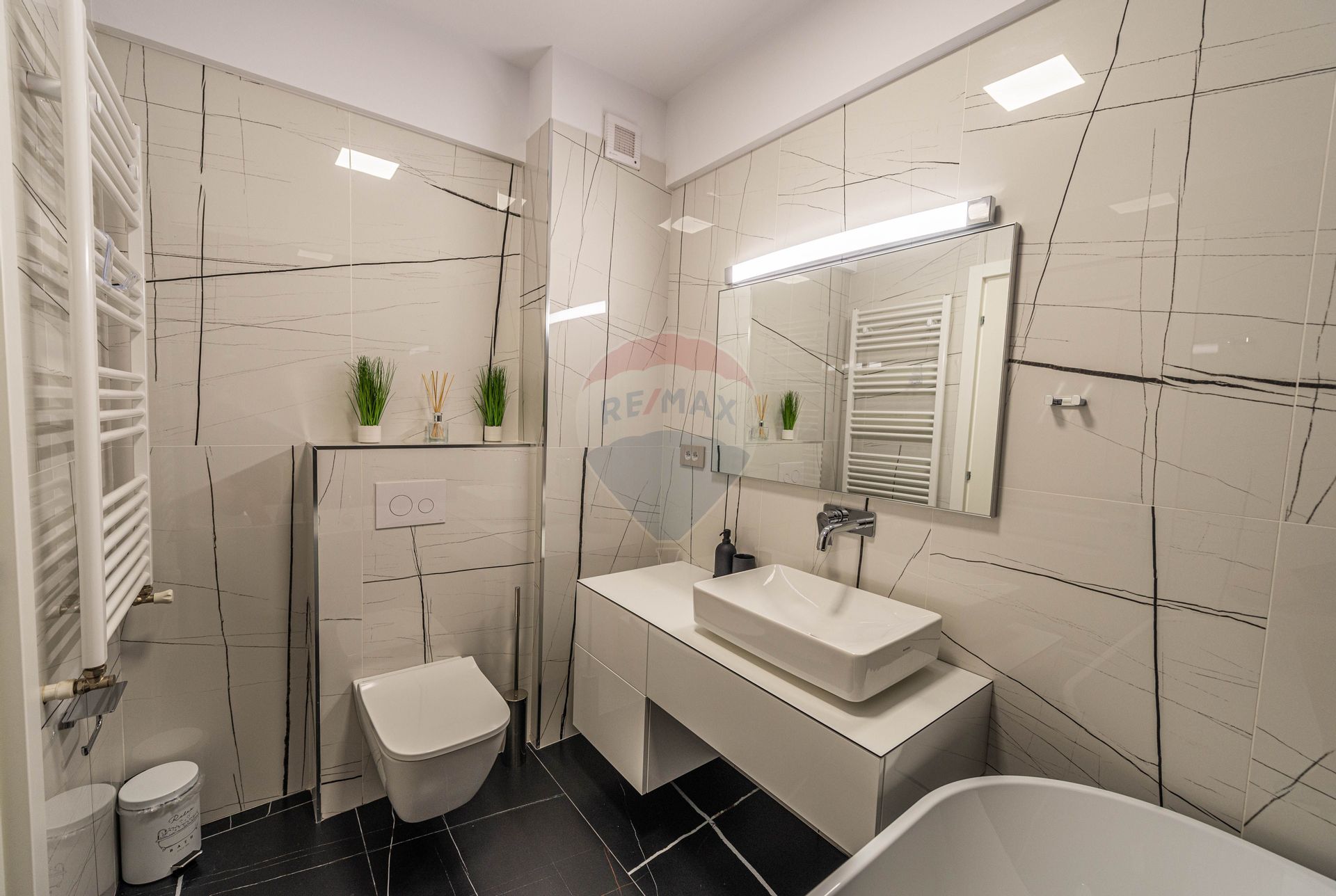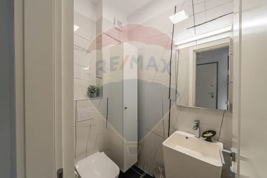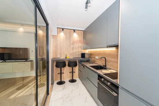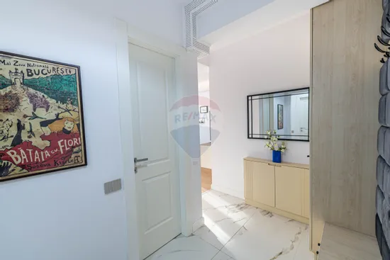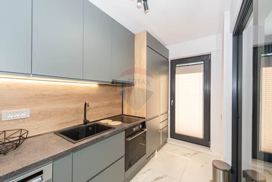 Having its own central heating system and underfloor heating system, air conditioning in both rooms, and being fully furnished and equipped (washing machine and dryer, built-in refrigerator, dishwasher, electric oven, induction hob, hood, TV), the apartment provides all the necessary comfort, being ready to move. The environment provided by the heating and cooling systems can also be controlled in a smart system, remotely.